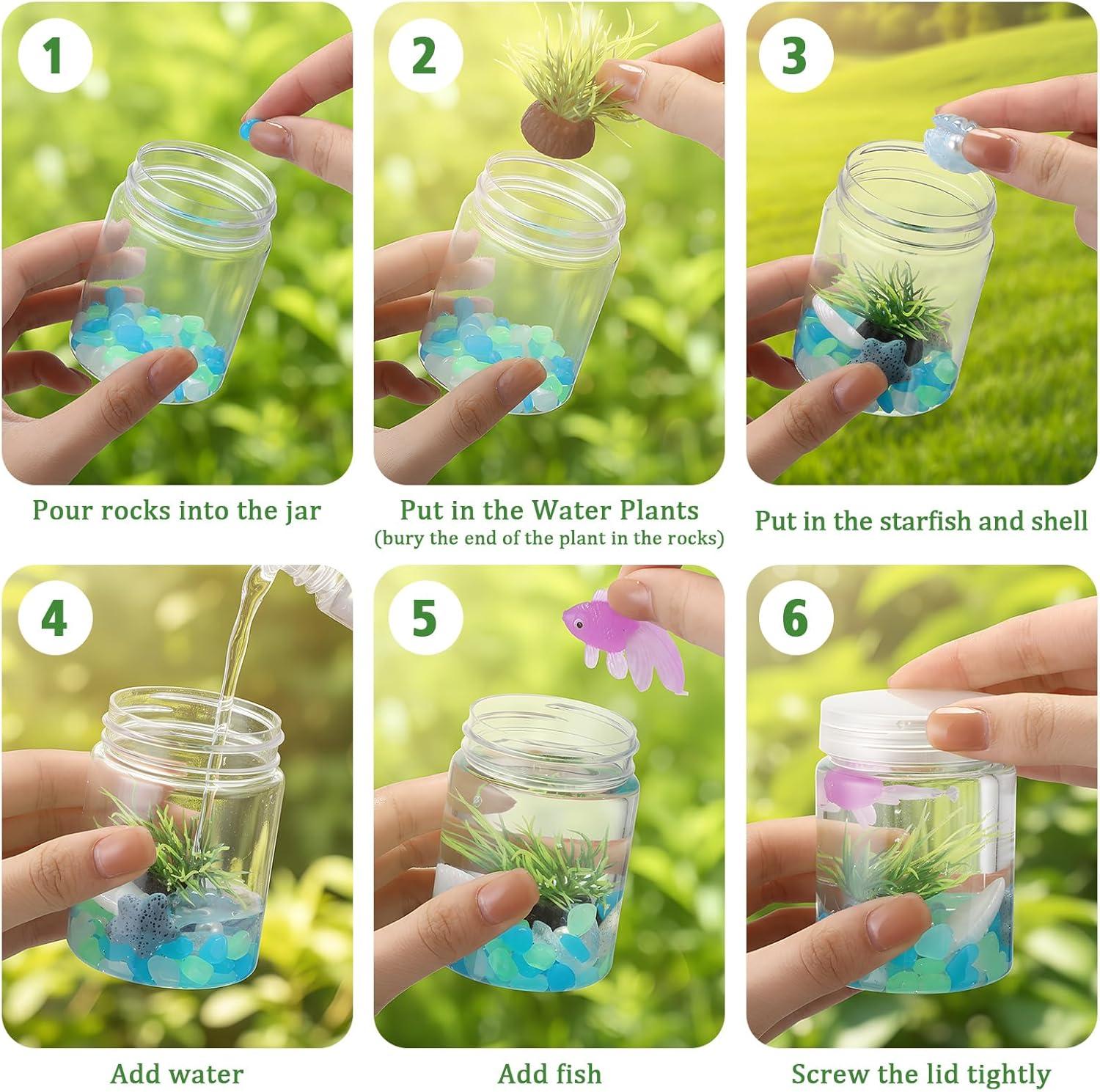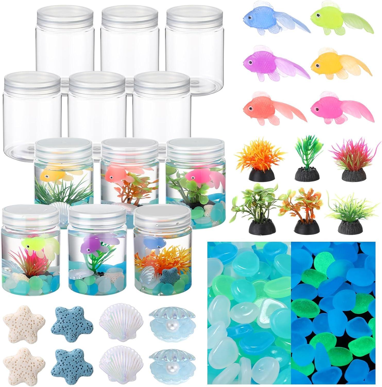 Features: Aquarium Combination Design: Our fish tank decoration set is rich in combination, including not only fish bowls, but also plastic fake fish and fake water plants as decorations. At the same time, you can also lay a layer of stones on the bottom of the fish bowl to make your fish tank decoration beautiful Specifications: Material: plastic Color: multicolor color Size: Fishbowl: 5.8 × 7.5 cm Fish: 4.5 cm Stone: 5–10 mm Plant: 4–5 cm Starfish/shell: 20–27 mm Package includes: 12 x Fishbow
