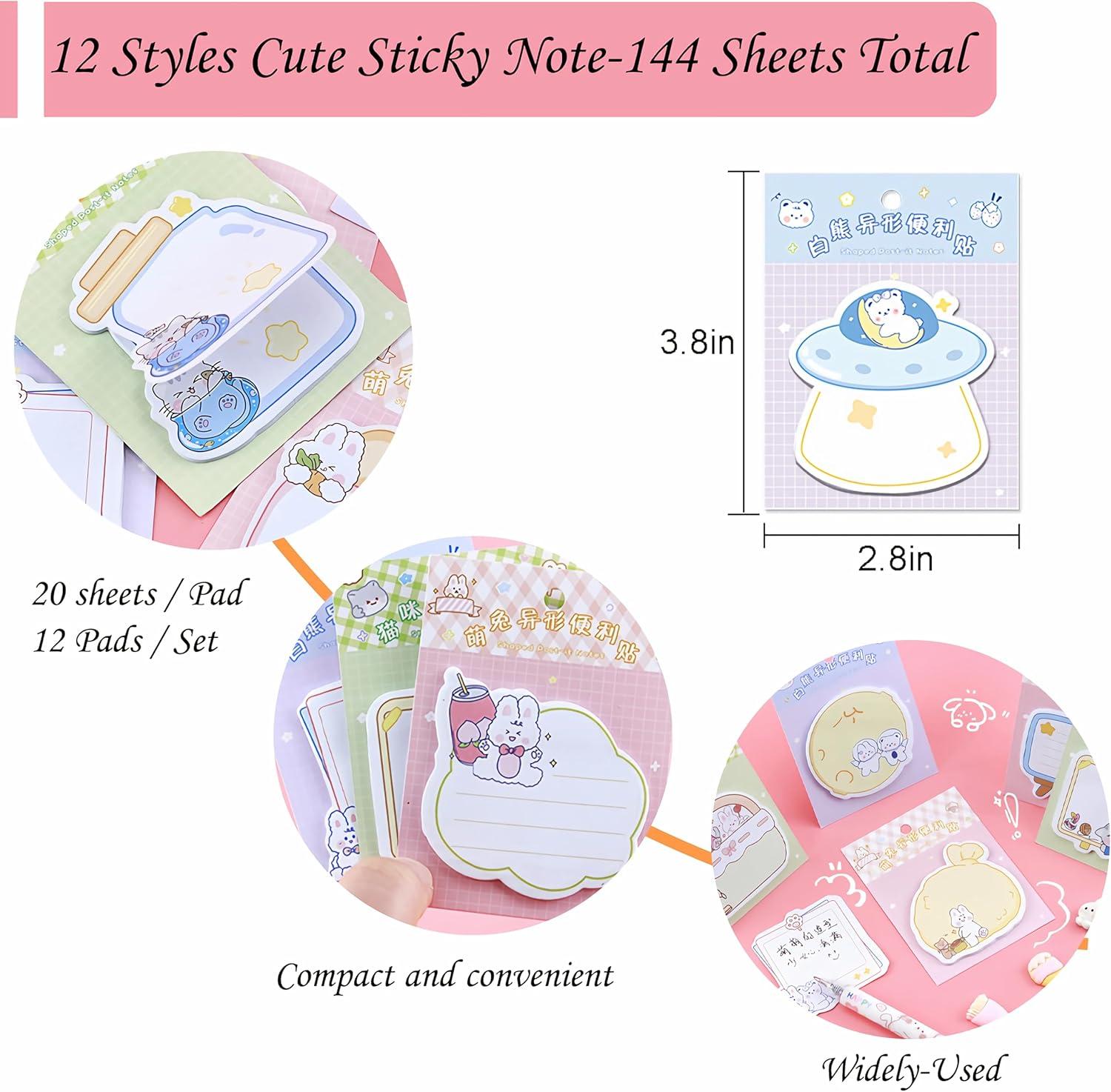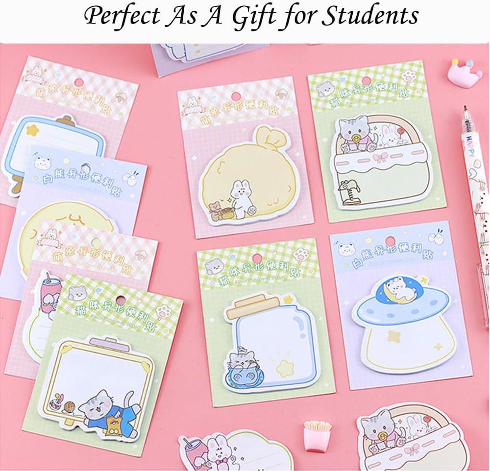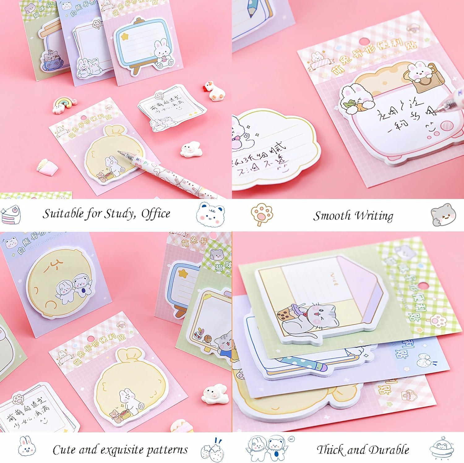 12 Pack Cute Cartoon Cat Sticky Notes in 12 different design including bears, rabbits, cats, etc.. 20 notes per packet, totaling 240 notes. These animal-shaped stickers can be given to classmates, friends as daily writing stickers, which are cute and practical. It is also a good choice for small gifts. Suitable Size 6 x 6 cm/2.4 x 2.4 inches. Introducing the cute cartoon sticky notes set – a delightful fusion of functionality and charm! This perfectly sized collection is easy to carry, fitting e