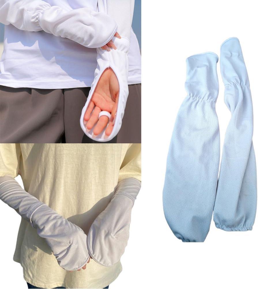 Features: 100% brand new and high quality. Material:Polyester Color:White+Gray Size:One size fits most ults and can be worn from 40-85kg Lightweight:Technology ice sensitive fabric, cool to the skin, lightweight and breathable, dry and not stuffy Soft:Soft rebound, durable and upgred, not easy to snag Sunshe:Full of sunscreen details, sunshe and UV protection Lengthened:Lengthened to the back of the hand for comprehensive protection, the design of the back of the hand provides long-lasting sun p