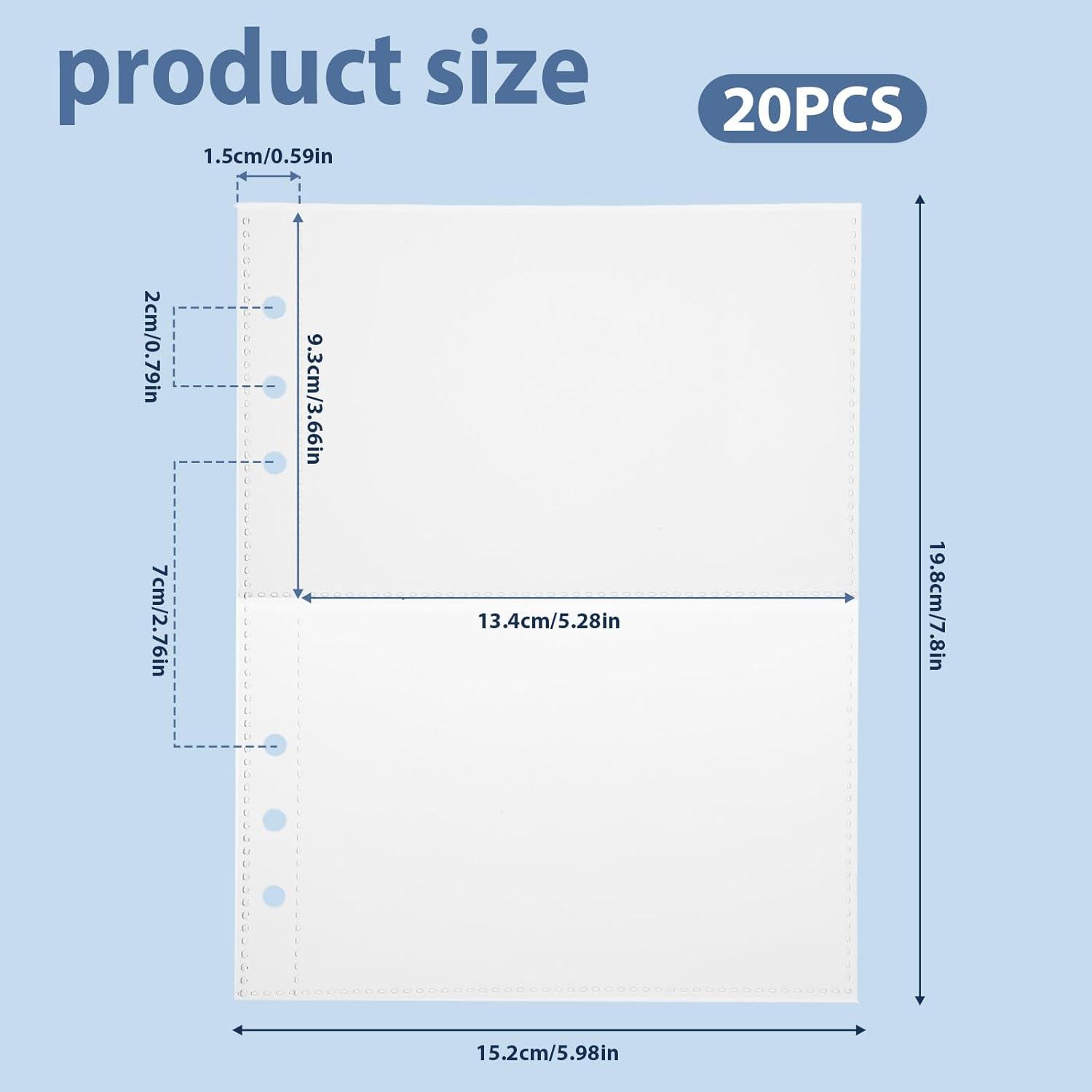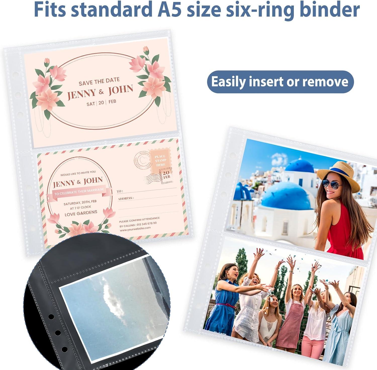 Our waterproof and stain-resistant A5 binder inserts have a transparent design that ensures your collection is clearly visible. The top pocket makes it easy to insert and remove items. They are ideal for storing recipe cards, stickers, postcards, photos, notes, and other items, and are perfect for use at home, at school, in the office, in small businesses, and at parties. Specifications: Material: BOPP plastic Color: Transparent Dimensions: Sheet size: 19.8 x 15.2 cm / 7.8 x 5.98 in Single grid