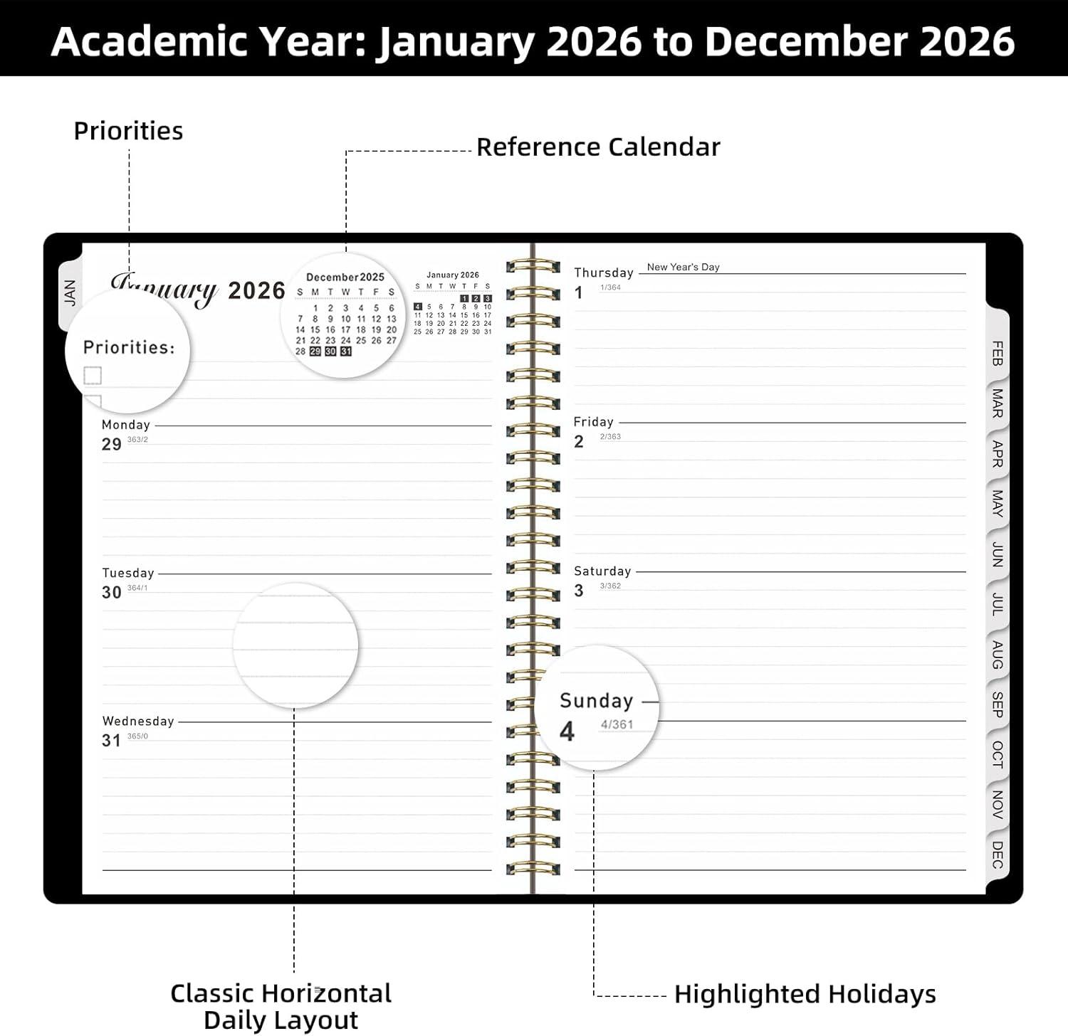 - Master Your Schedule with Ease:This 2026 planner offers 12 months (JAN 2026 - DEC 2026)of monthly and weekly pages for seamless acemic planning and scheduling,ideal for daily planning. Perfect teacher supplies and an essential acemic planner.