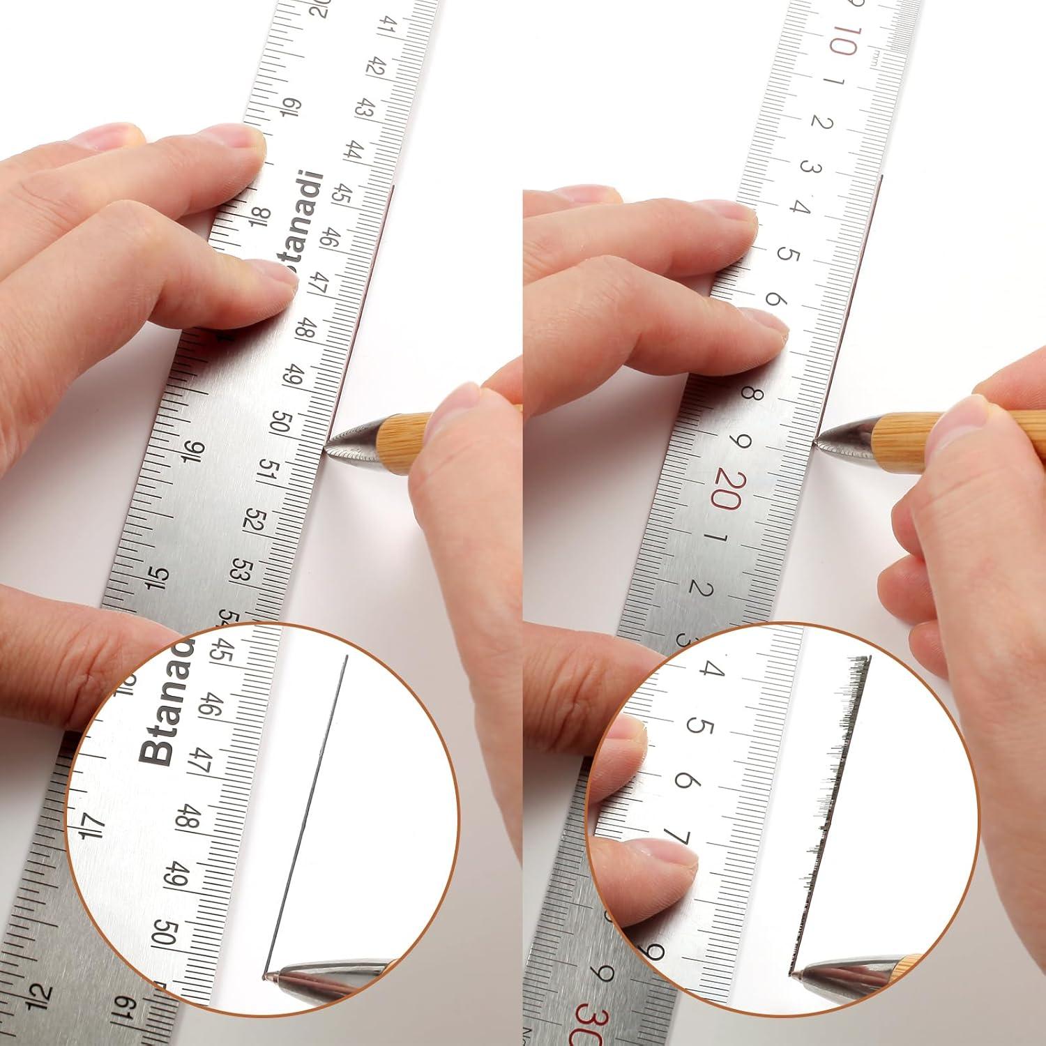 - Precise Measurements: This stainless steel ruler features both Imperial and metric scales, providing clear and precise measurements. The etched markings, filled with paint, ensure long-lasting durability, making every measurement accurate and reliable.