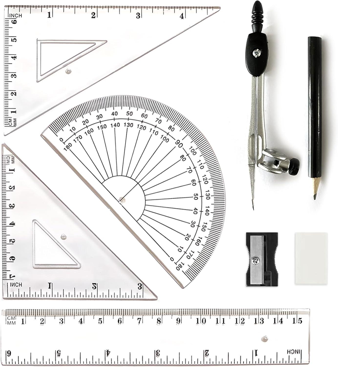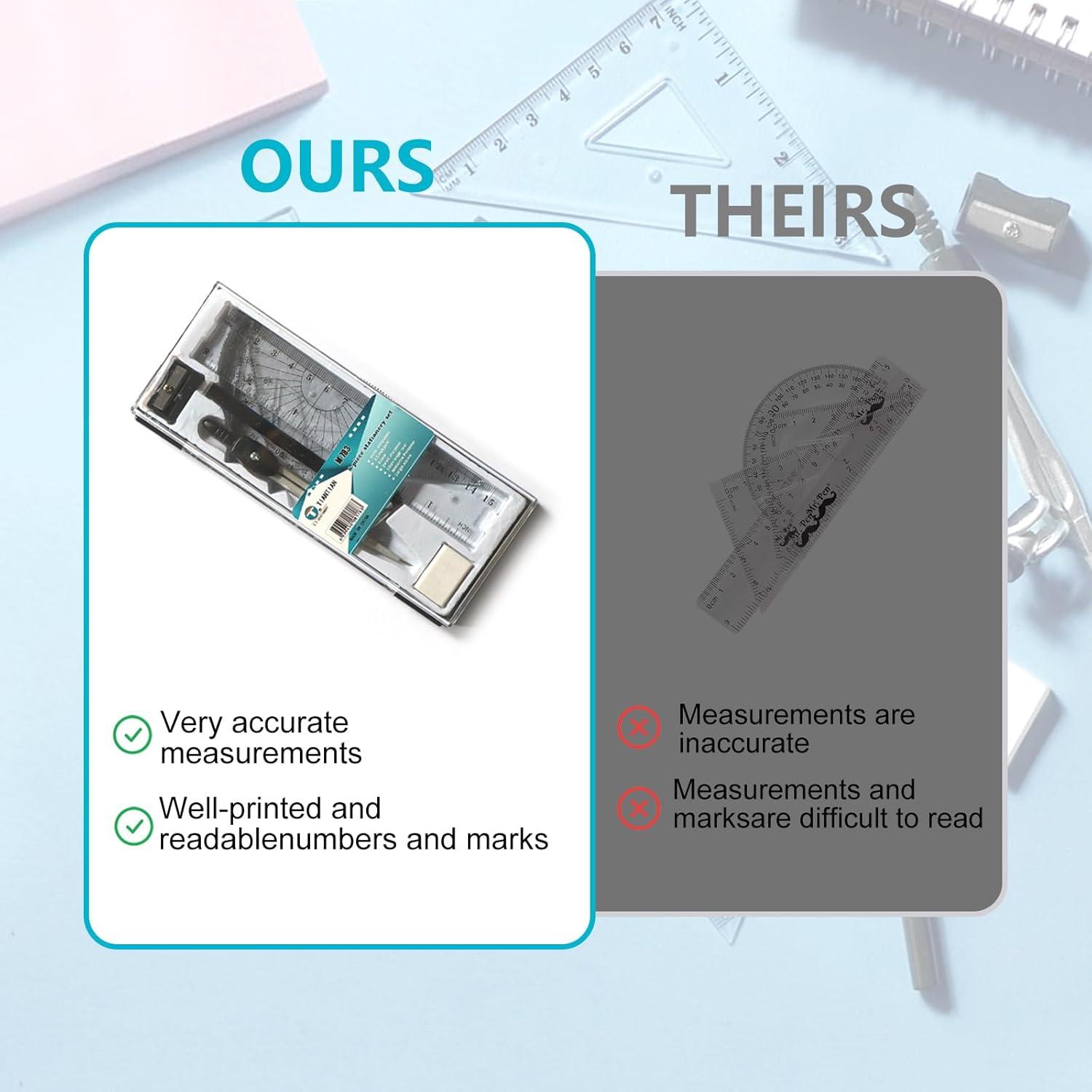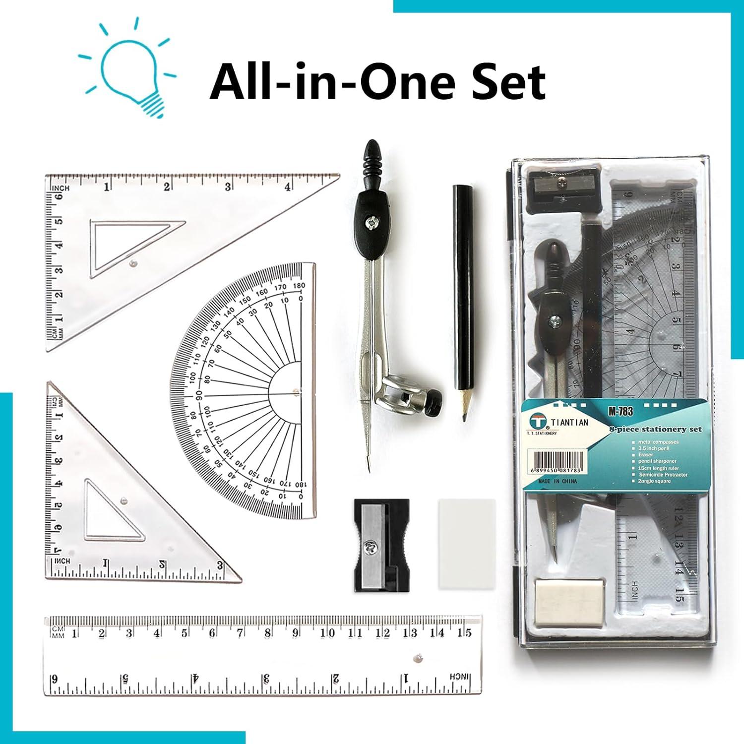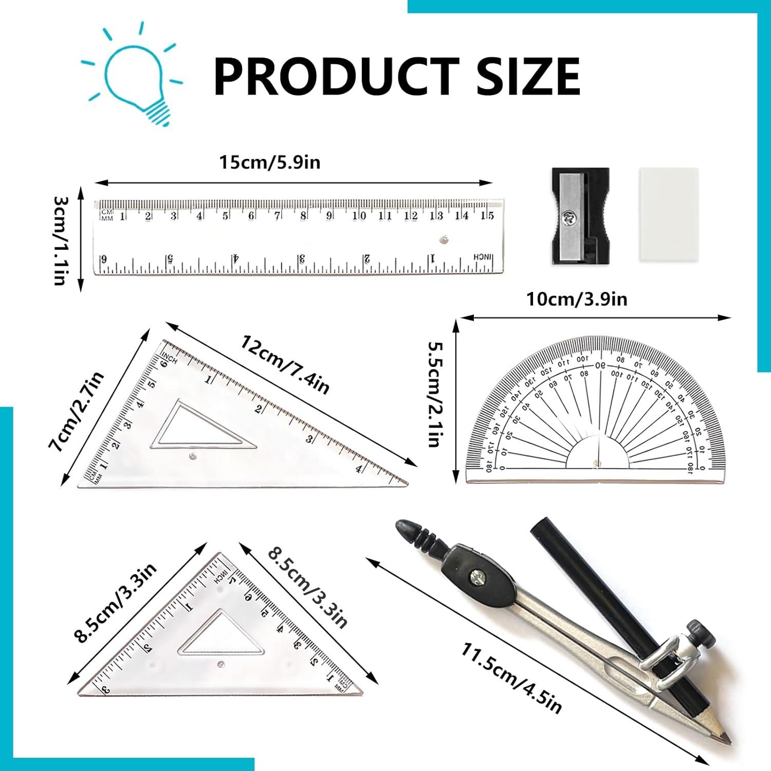 The Math Set/Geometry Set Designed by Experienced Math Experts with All Essential Items for Teachers and Students at Any Level, it is he perfect set for home, school or office.