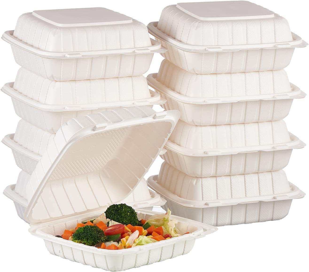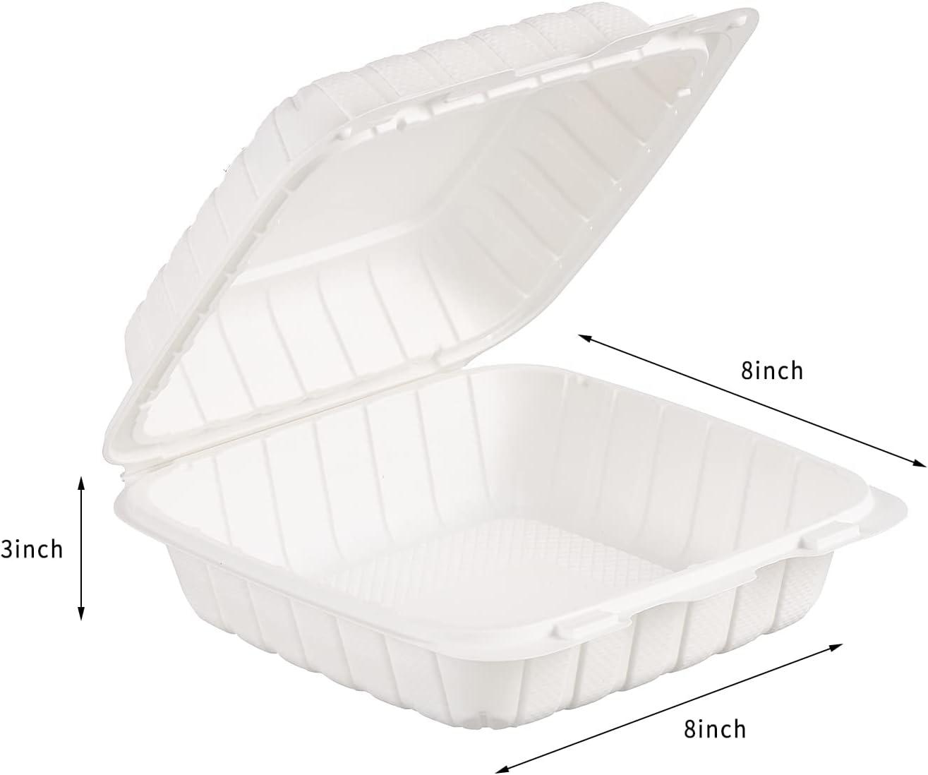 | Included Components | 50-Pack Hinged Clamshell Containers |