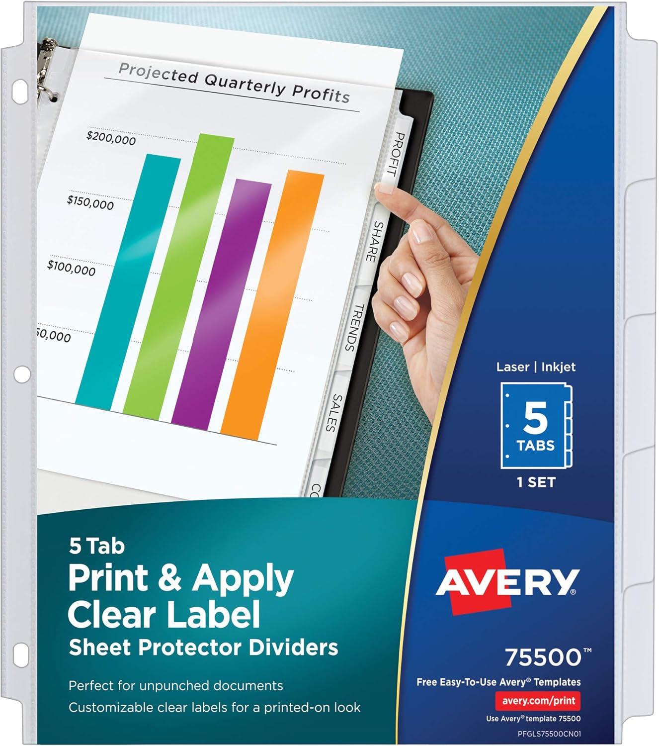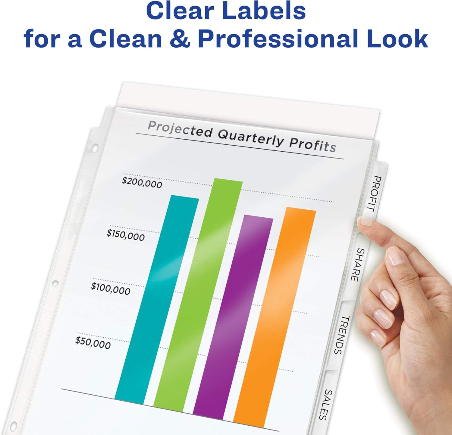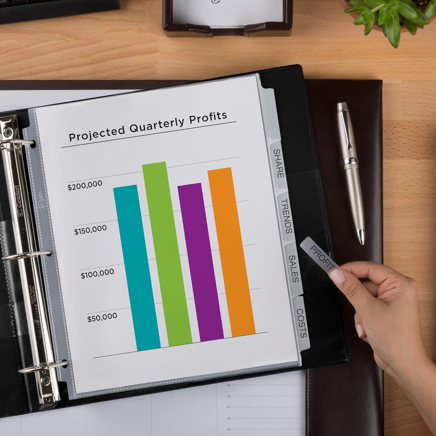 For those busy professionals looking for sheet protectors that are optimized to create professional-looking indexed projects, these easy-to-customize 5-tab plastic dividers are the perfect all-in-one solution. The clear top-loing tabbed index dividers feature contrasting white tabs and an Easy Peel sheet that lets you label your plastic divider tabs with ease and efficiency, saving you tons of time so you can organize your projects quickly. Whether you’re working on one project or need multiple