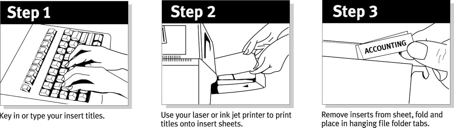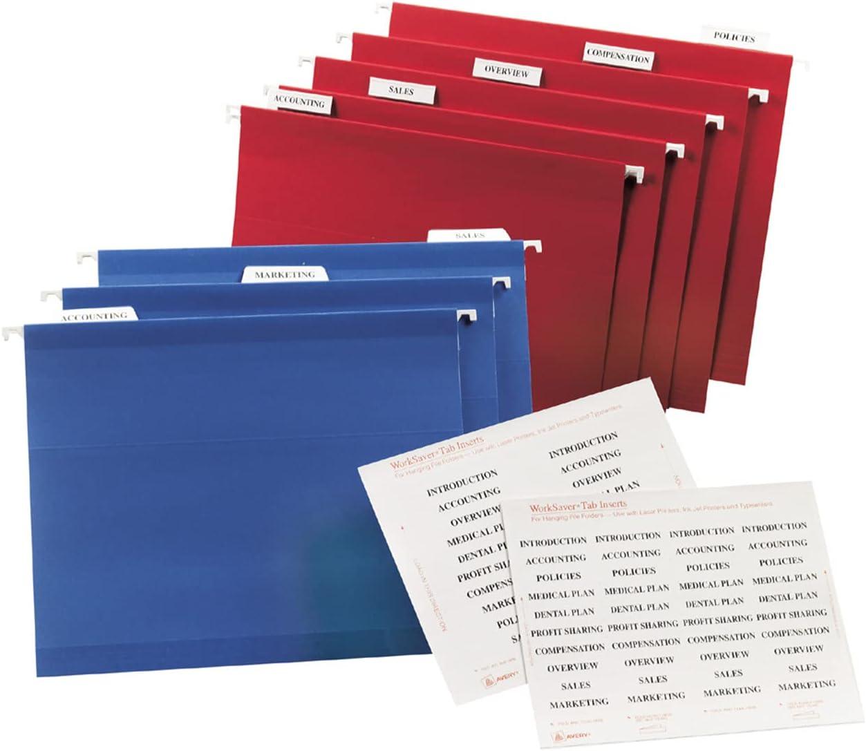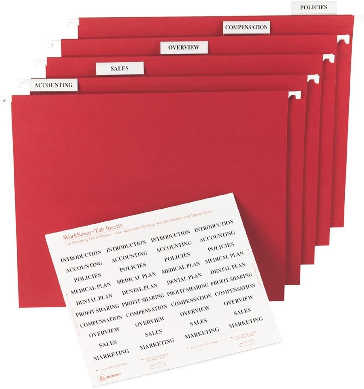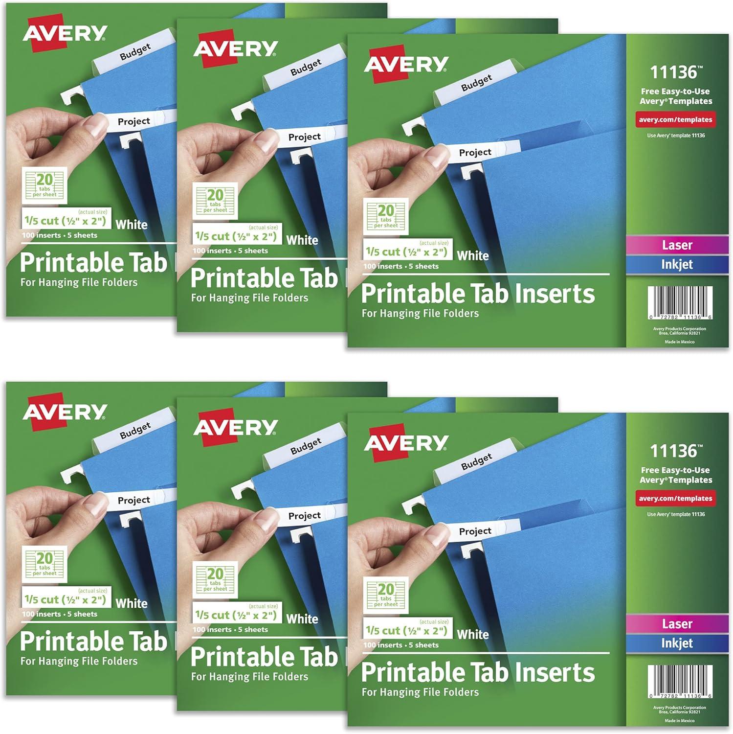 Get the hang of your hanging file organization with these Avery Printable Tab Inserts. The 1.5” x 2” folder tab inserts are designed to fit 1/3 cut and 1/5 cut hanging file folders, so you can easily organize and manage your hanging file system. Personalize the blank index tab inserts by hand with pencil, pen, marker or highlighter, or customize them with the free, easy-to-use templates and designs found on the Avery website. The file tab insert sheets are formatted so you can easily print text