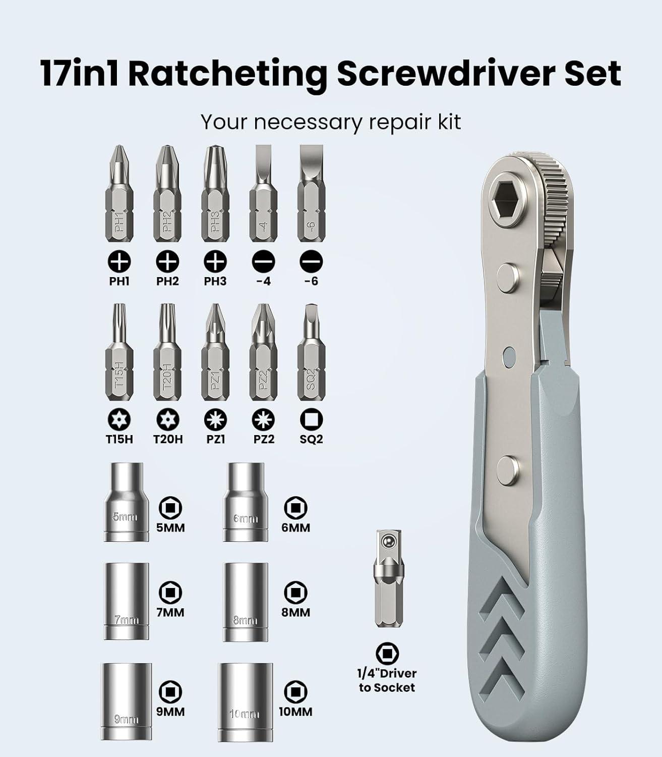 | Material | Steel (bits), Plastic and Rubber (handle) |