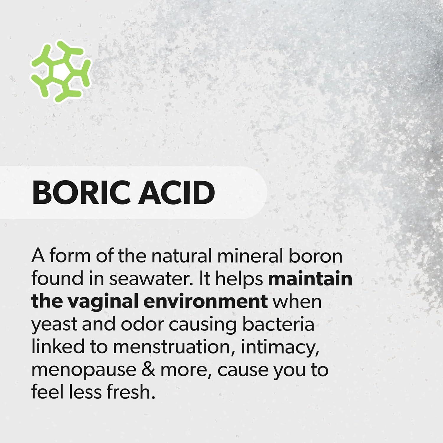 You know when you are starting to feel off, and may even notice frustrating or embarrassing odor. Don’t despair—use AZO® Boric Acid Vaginal Suppositories as needed to help take control. These vaginal suppositories contain clinically studied Boric Acid, a form of the natural mineral boron, found in seawater. Boric Acid’s unique properties help support the vaginal environment and promote a feeling of freshness. Each suppository is contained in a vegetarian capsule and is free from GMOs, synthetic