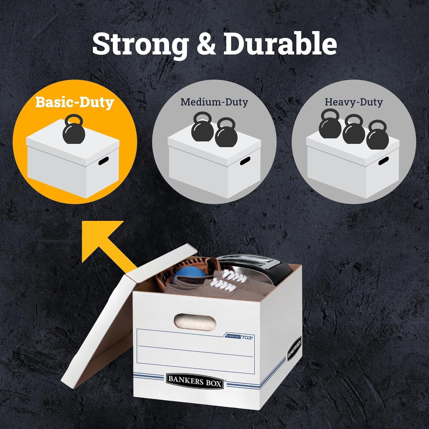 Bankers Box Basic Duty file storage boxes are the ideal solution for budget-friendly document organization. Designed for standard office tasks, these cardboard file boxes with lids offer dependable storage for letter and legal-size paperwork. With easy-to-assemble construction and lift-off lids, they’re perfect for archiving, seasonal file rotation, and short-term projects. Built with 60% recycled materials, they support sustainability while helping professionals stay organized. Whether you're c