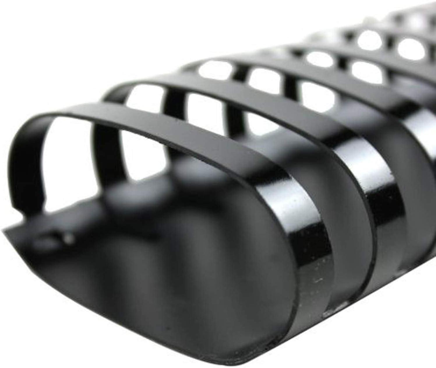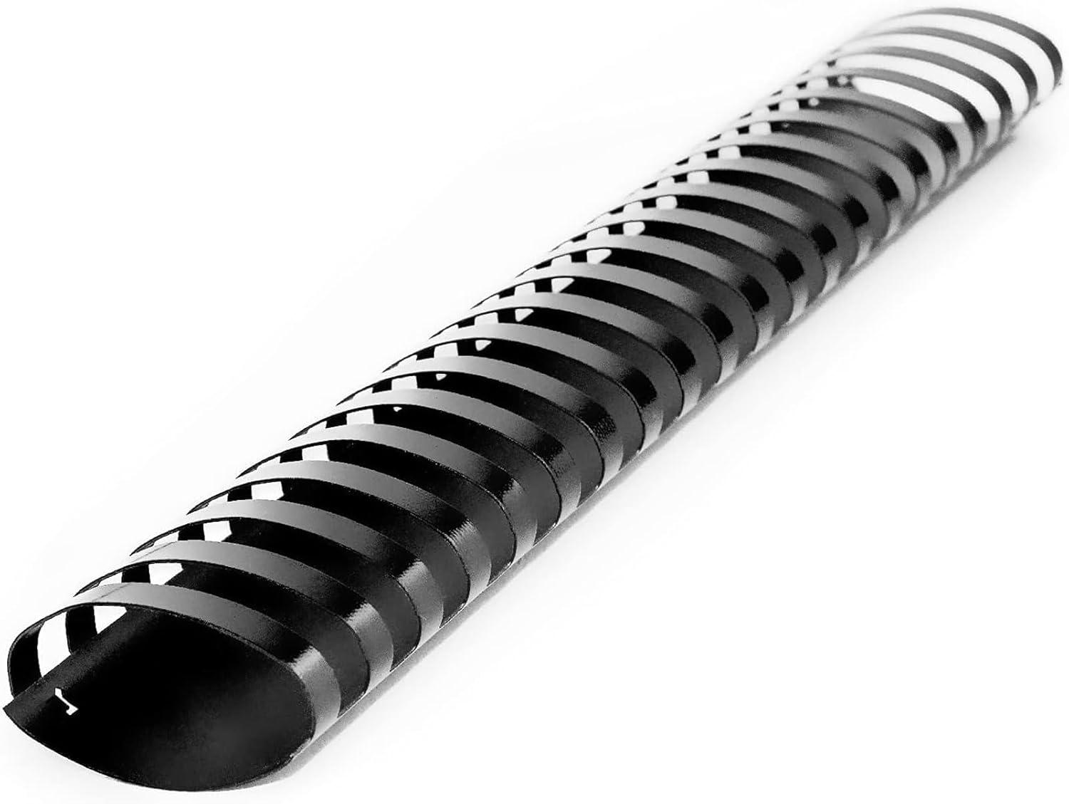 100 Black 1.5-inch diameter plastic binding combs with standard 19 loop (19 ring) design for typical 11" edge comb binding equipment. Me of quality PVC plastic. NOTE: Users typically choose a comb diameter approx. 1/8" thicker than their book when measuring their book flat, but NOT compressed.