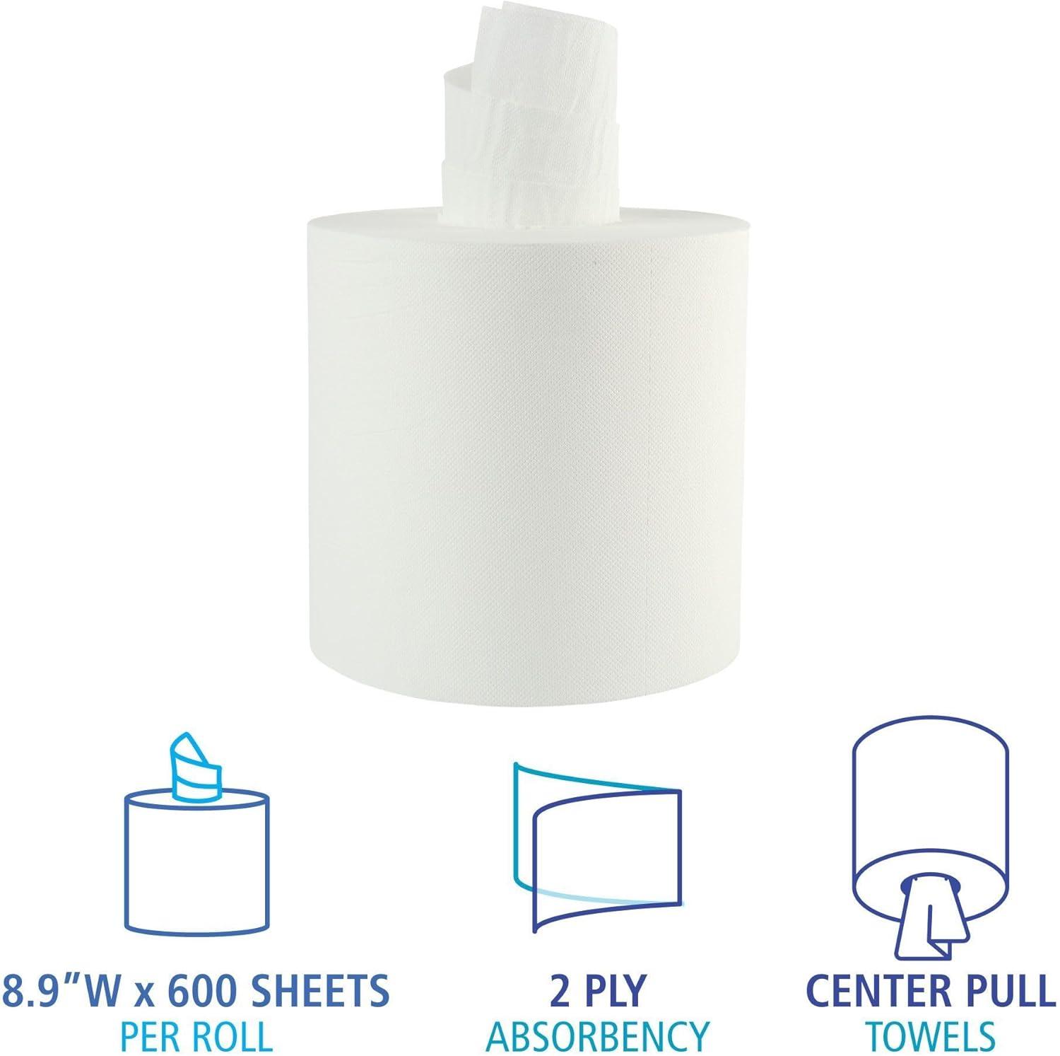 Boardwalk BWK410321 8.9 in. Center-Pull 2-Ply Roll Towels - White (600/Roll 6/Carton)