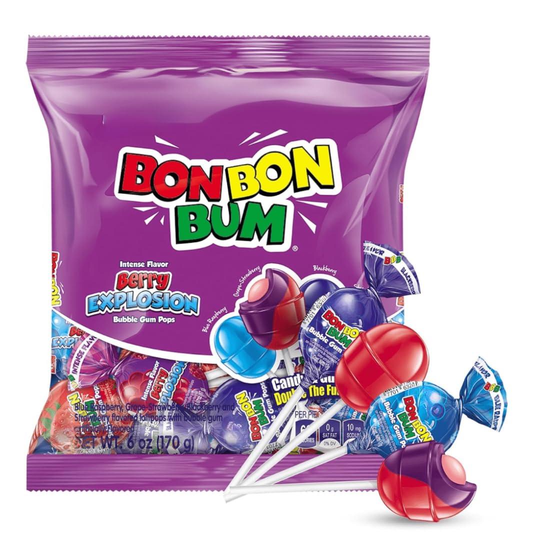 Bon Bon Bum by offers a fun and flavorful experience with its assorted flavors, combining the deliciousness of a fruity lollipop with a bubble gum center. Perfect for candy lovers of all ages, these bubble gum pops come in a variety of tasty flavors like watermelon, strawberry, mango, and more. Enjoy the burst of sweet fruitiness followed by the chewy gum inside. Ideal for parties, sharing, or simply enjoying a treat, Bon Bon Bum is a must-have for any candy collection!