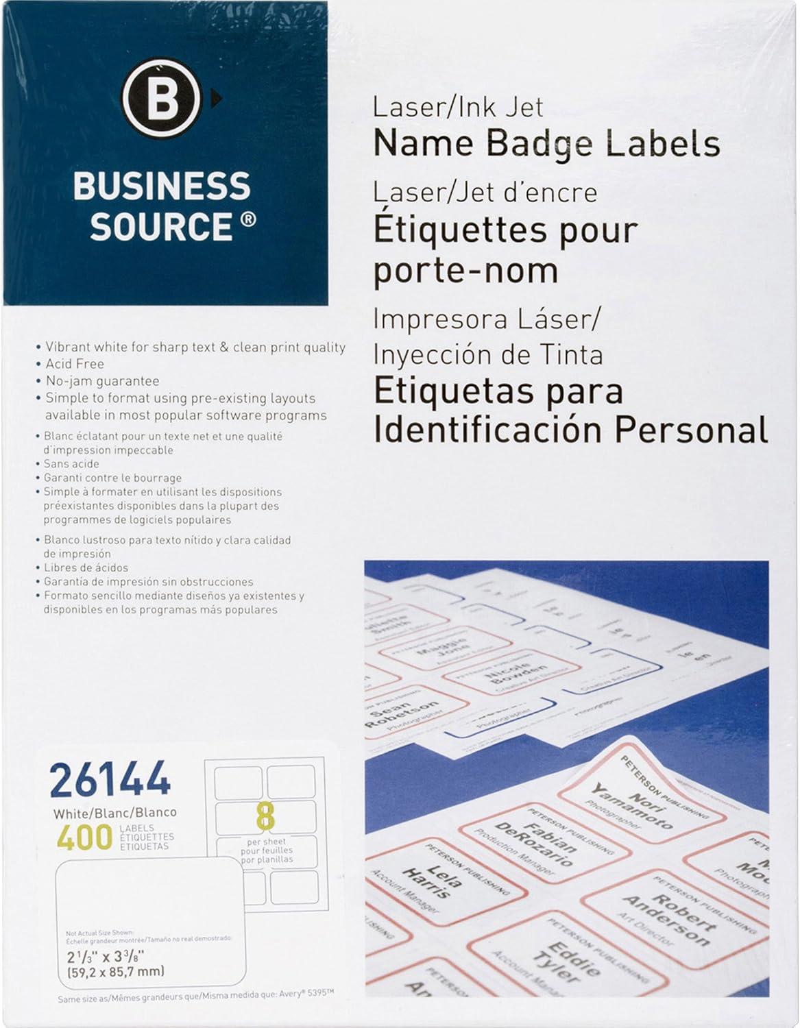 Create professional-looking name bges for any event using your own desktop laser or inkjet printer. Name bge labels are easily formatted with preset layouts available in most popular word processing programs. Print the self-hesive labels using a laser or inkjet printer. Labels won't jam. Then simply peel and stick. Labels are safe for most fabrics, but are not recommended for corduroy, leather, silk, suede, velvet or vinyl.