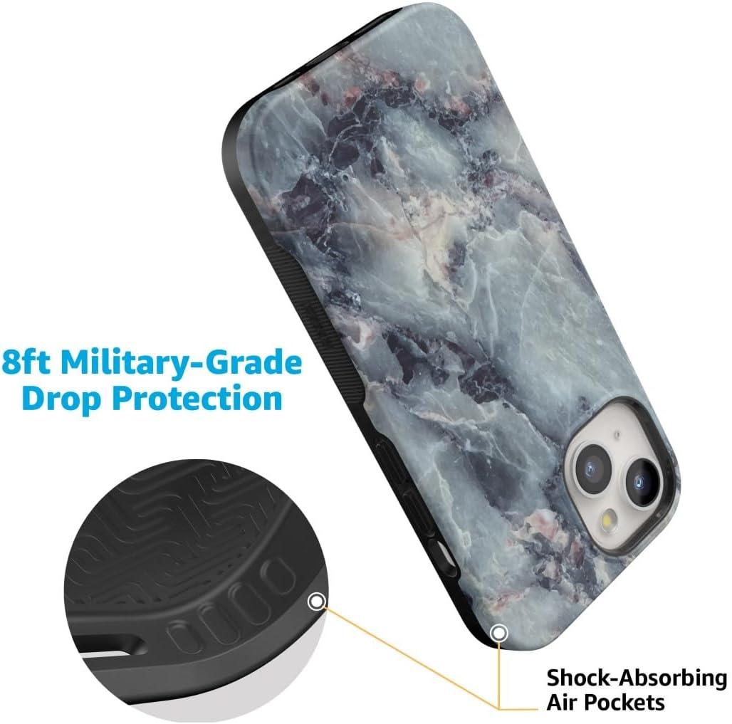 This eye-catching cute blue marble phone case features a range of beautiful blue colors that will make your phone stand in a crowd! Interested in black marble as well? Click to see! This elegant blue marble phone case is a unique and beautiful piece to d to any phone. The coloration of the case has a blueish gray base with accents of light pink. The marbled texture exudes a luxurious style that matches well with gold and blue. The case can be purchased for seven generations of phones, and its st