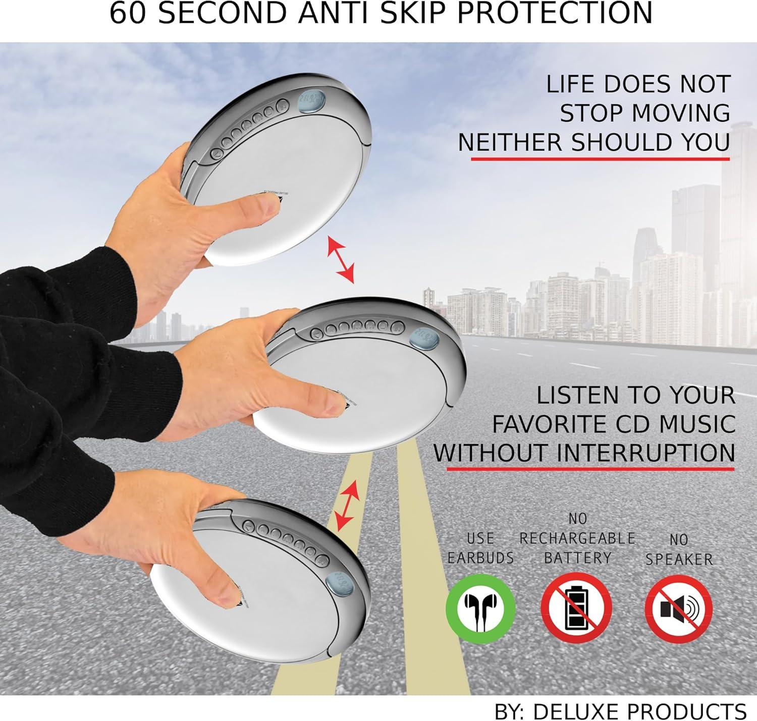 The Deluxe Personal CD Player is the perfect Mini CD Player you will ever need! Listen to your favourite CD Audiobooks! Play your favourite CD while driving in your Car or while you work out! (Aux in Cable Included) The 60 Second Anti Skip will ensure your CD does not skip while you are on the move! Connect to your favourite Speaker or Boombox! (Aux Cable included) Pull out your old CD collection out of storage and relive your old memories!!! This product is perfect gift for gift for a birthday