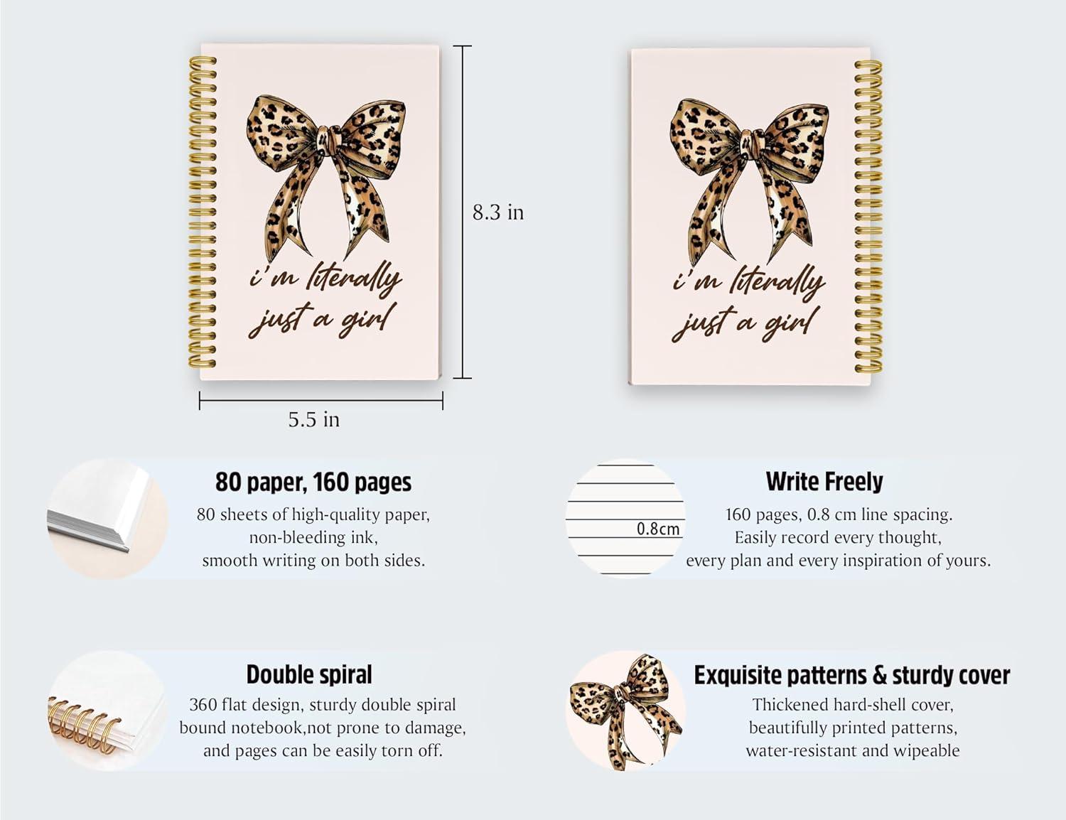 - Versatile and Portable Design: This compact spiral notebook (measuring 8 inch x 5 inch x 0.5 inch) is perfect for everyday use, fitting easily into pockets, handbags, or car glove compartments. Its sturdy cover and 80 inner pages, paired with elegant pens, allow you to record inspirations anytime, anywhere.