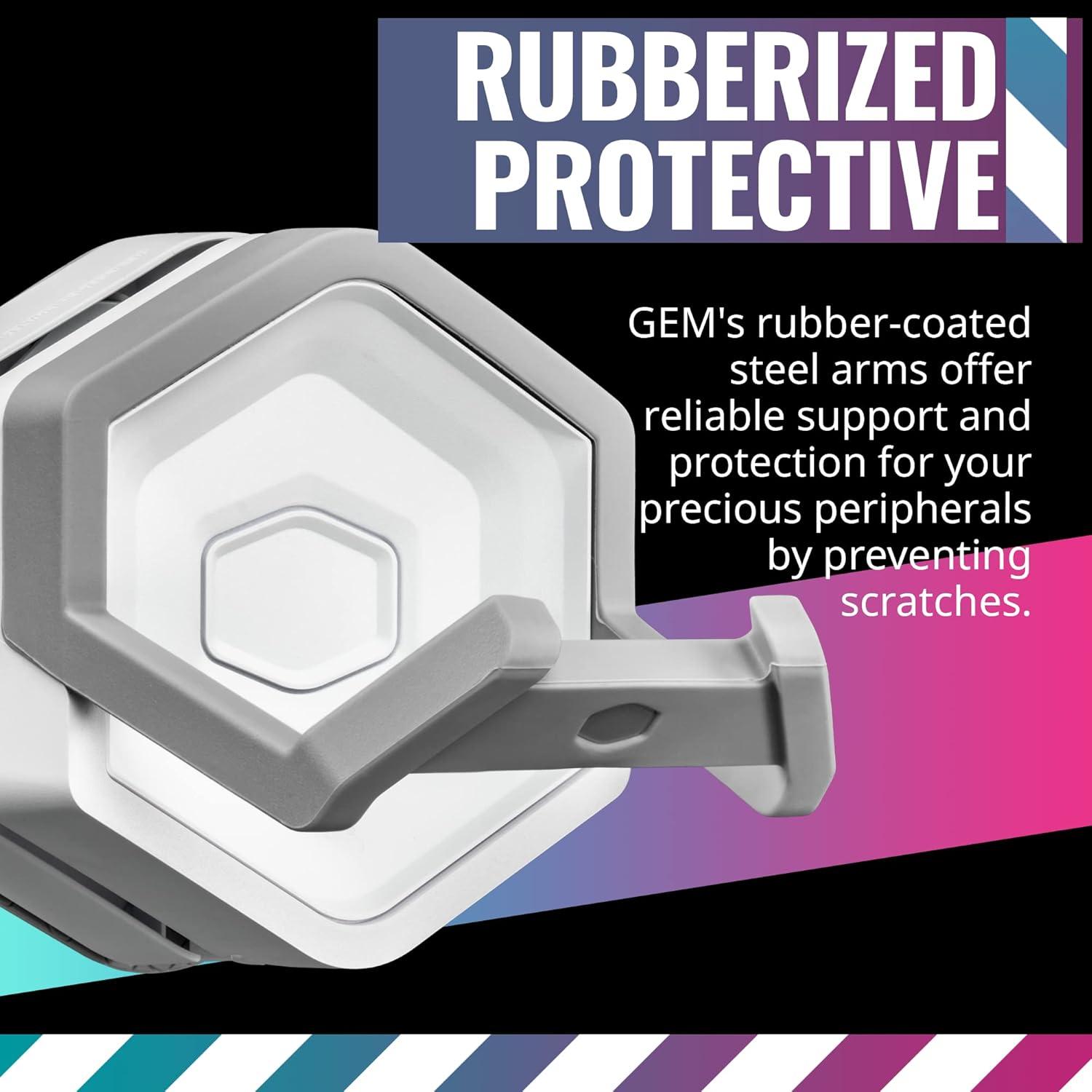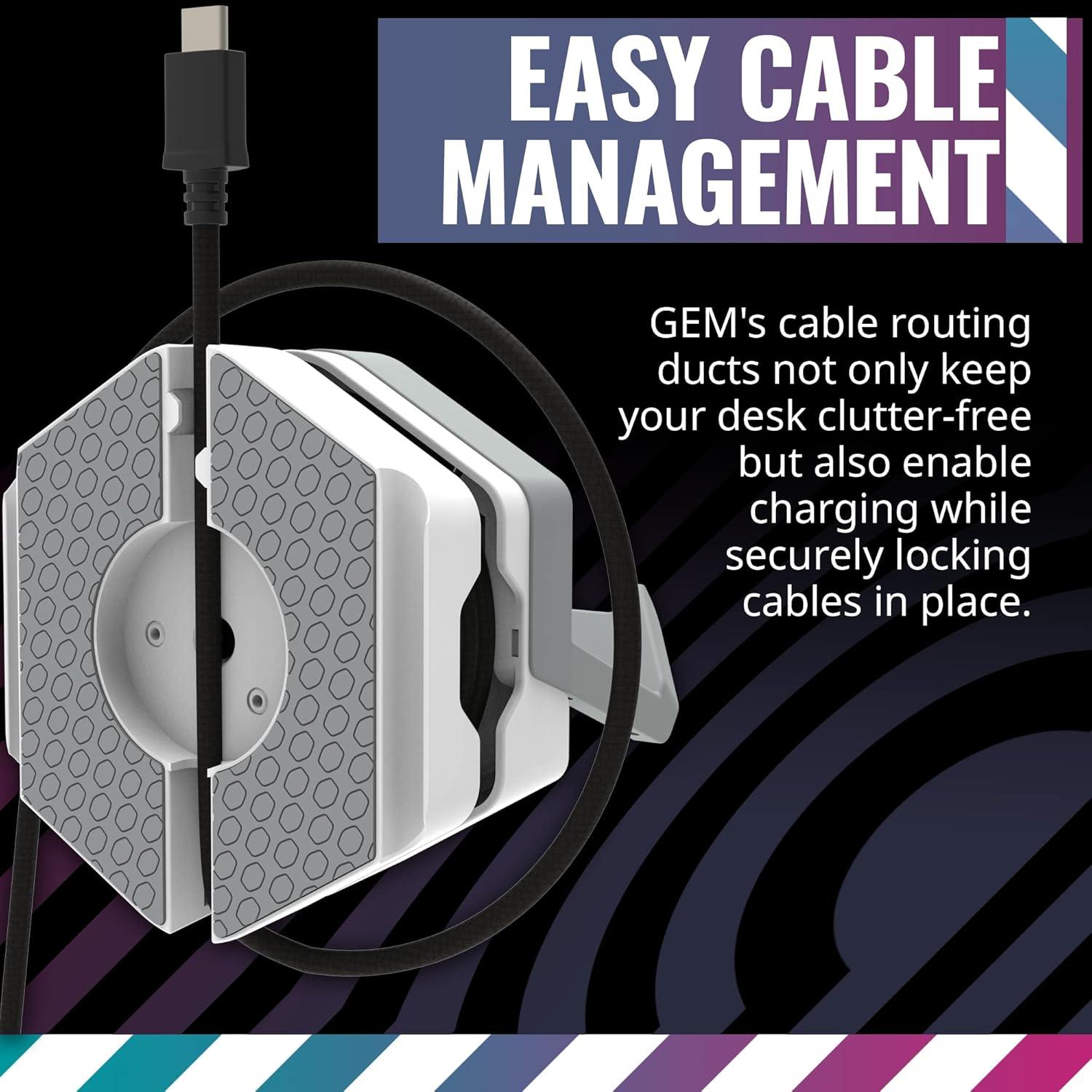 Turn any case into your own personal gaming storage system with the Gem! Magnetized for sturdy mounting, this accessory is me to store game ps, hesets and even VR hesets in style. Utilizing a unique SandwichTech design, Gem can also be attached to a wide variety of non-magnetic materials on PC cases. Built-in cable ducts allow effortless cable management, locking cables in place for tidiness and ease of charging. Rubber-coated steel arms provides reliable support while ensuring your gaming gear