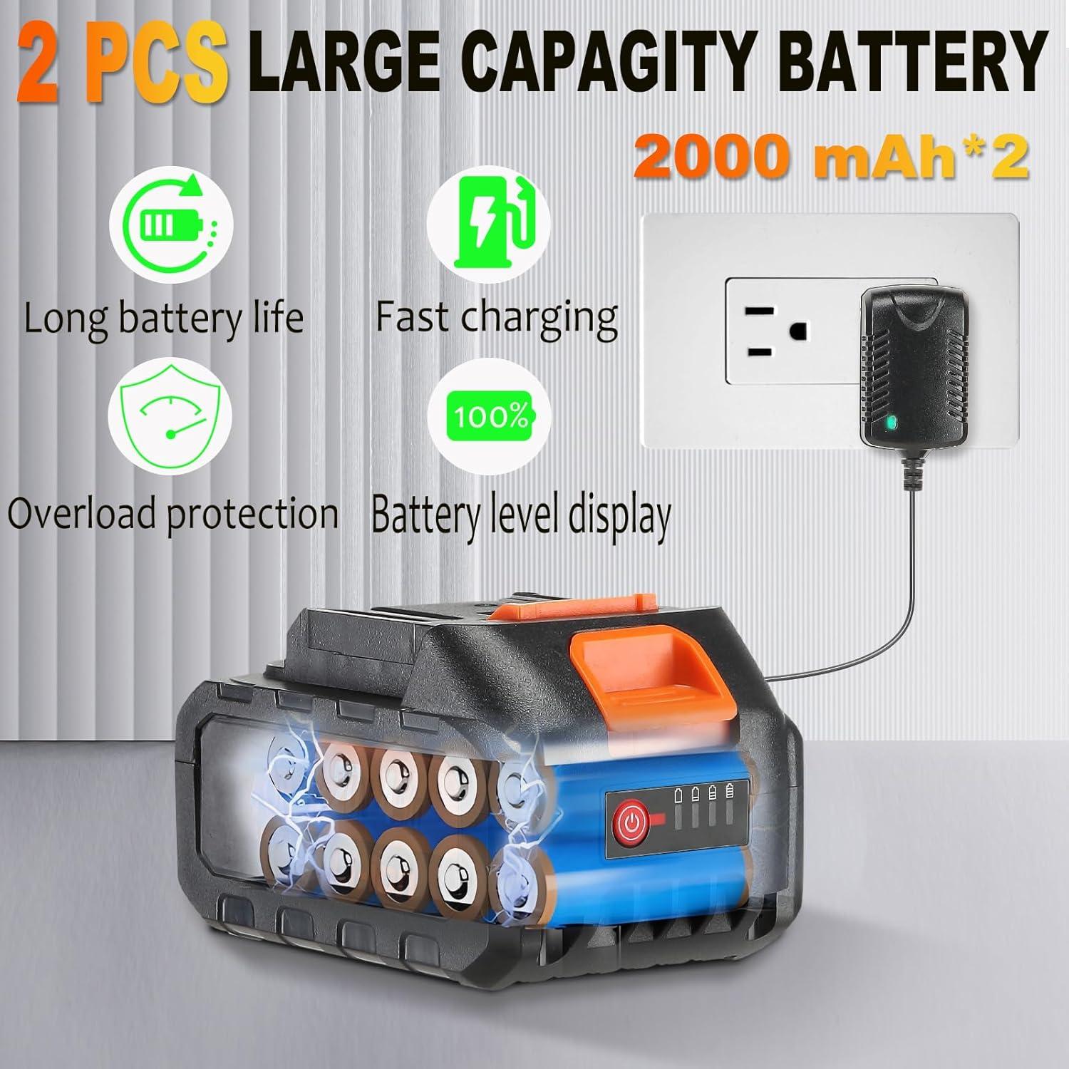 | Batteries | 2 Lithium Ion batteries required. (included) |