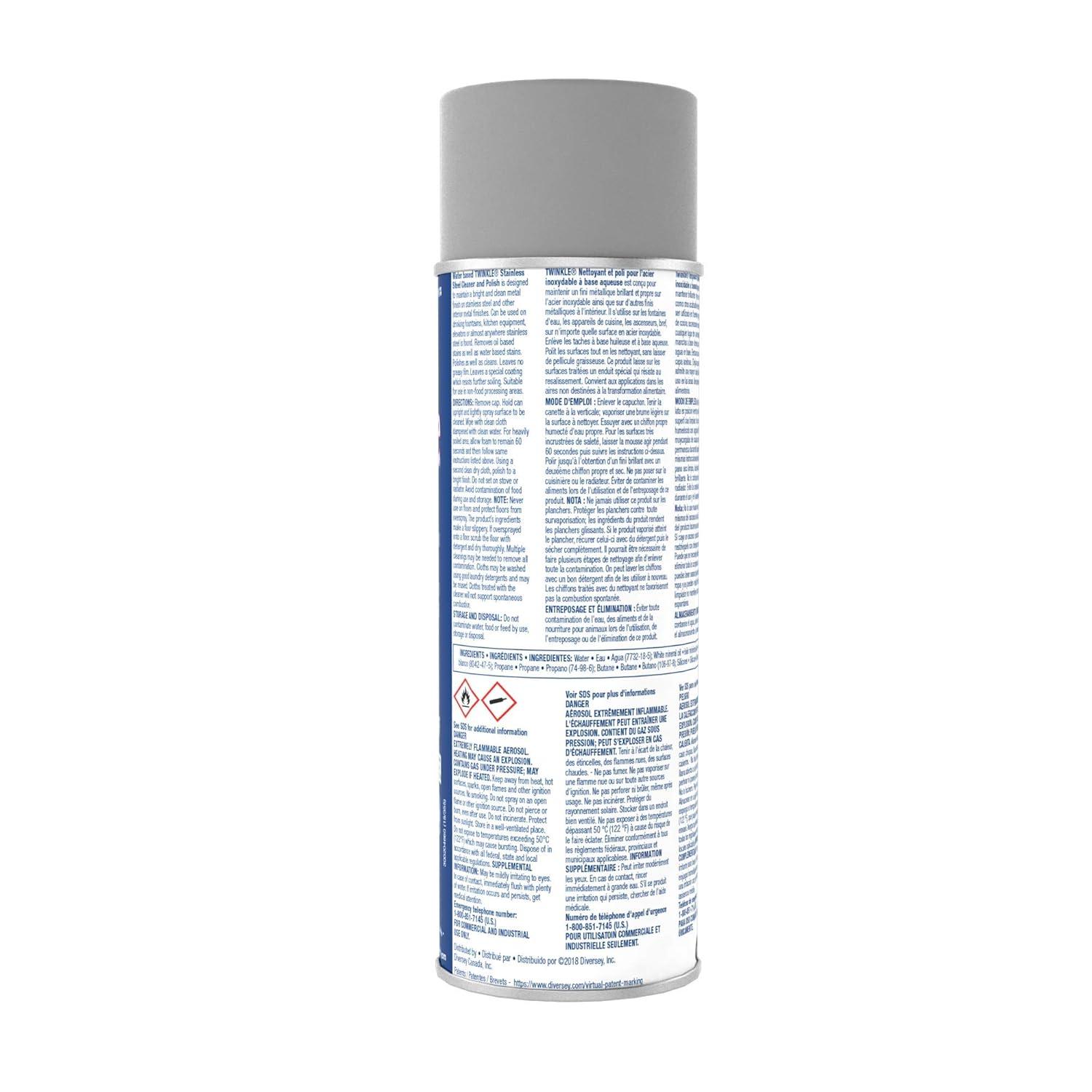 Water-based formula removes grease, dirt, fingerprints, smudges and water marks from stainless steel, brass, aluminum and chrome. Leaves no residue or greasy film. Protects against re-soiling. Contains no CFCs. White in color with a citrus scent. NSF C1 Registered.
