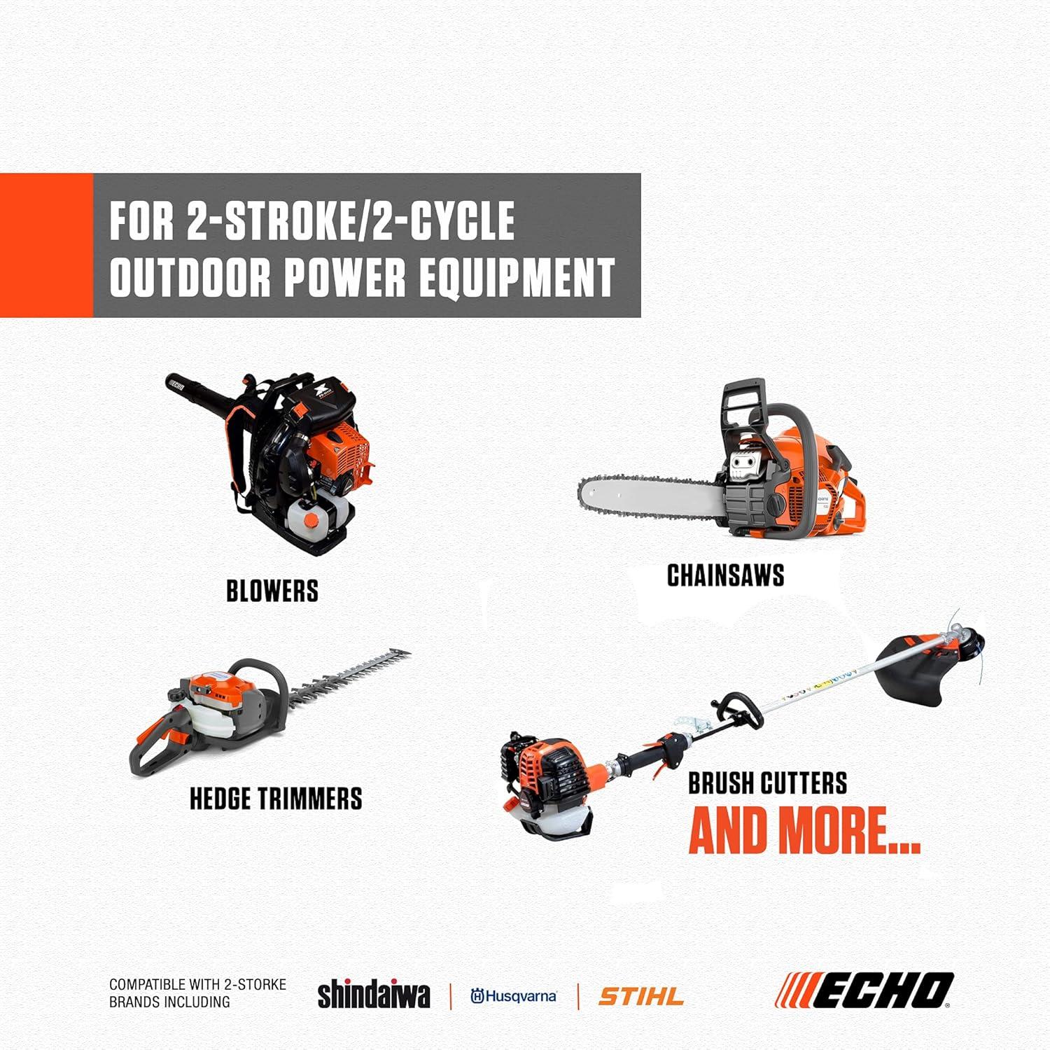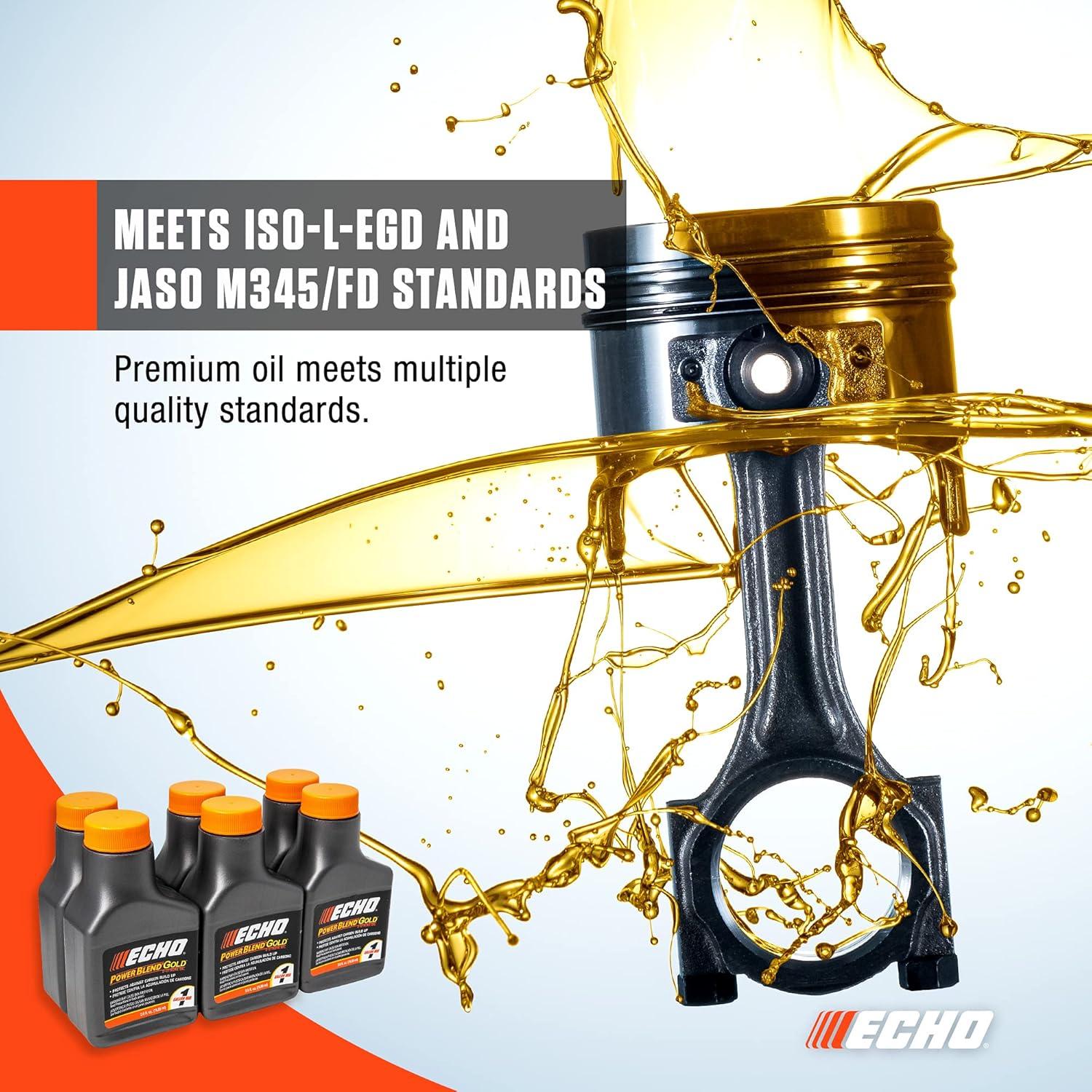 Echo Power Blend Gold Oil Mix is the perfect premium-quality 2-cycle oil for outdoor power equipment. This blend keeps your power equipment running for longer and without common issues like blockages and large amounts of smoke. Fits both ISO-L-EGD and JASO M345/FD. Cleaner burning oil lasts longer, is easier on outdoor power equipment, and produces less environmental pollutants. Echo Power Blend Gold also contains ditives for higher lubricating properties and a stabilizer that works for 30+ days