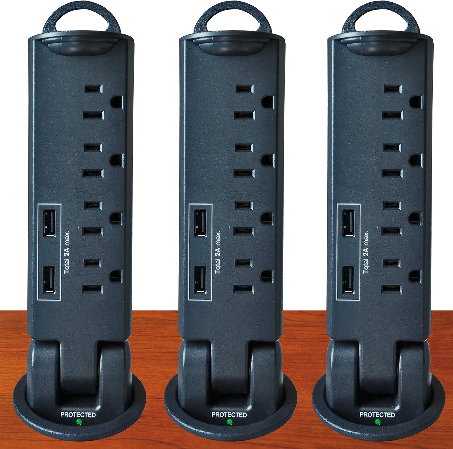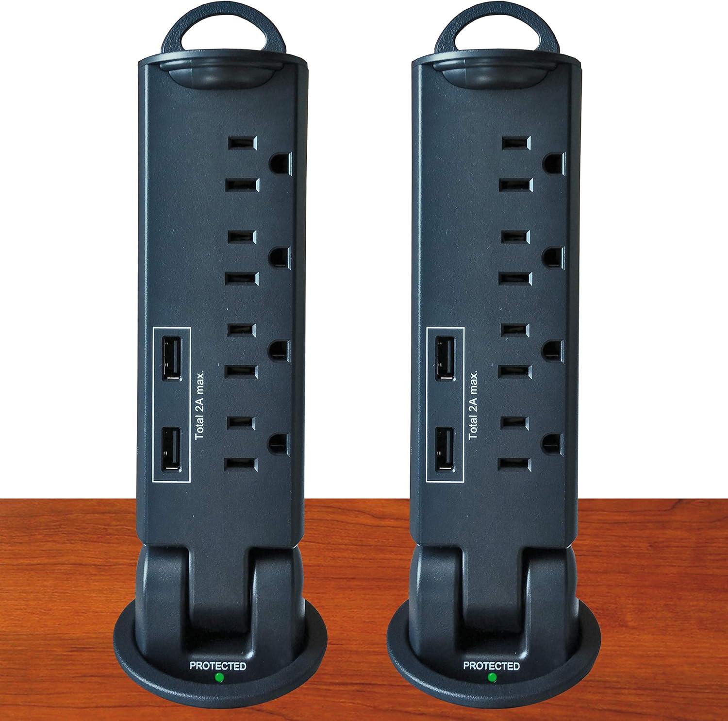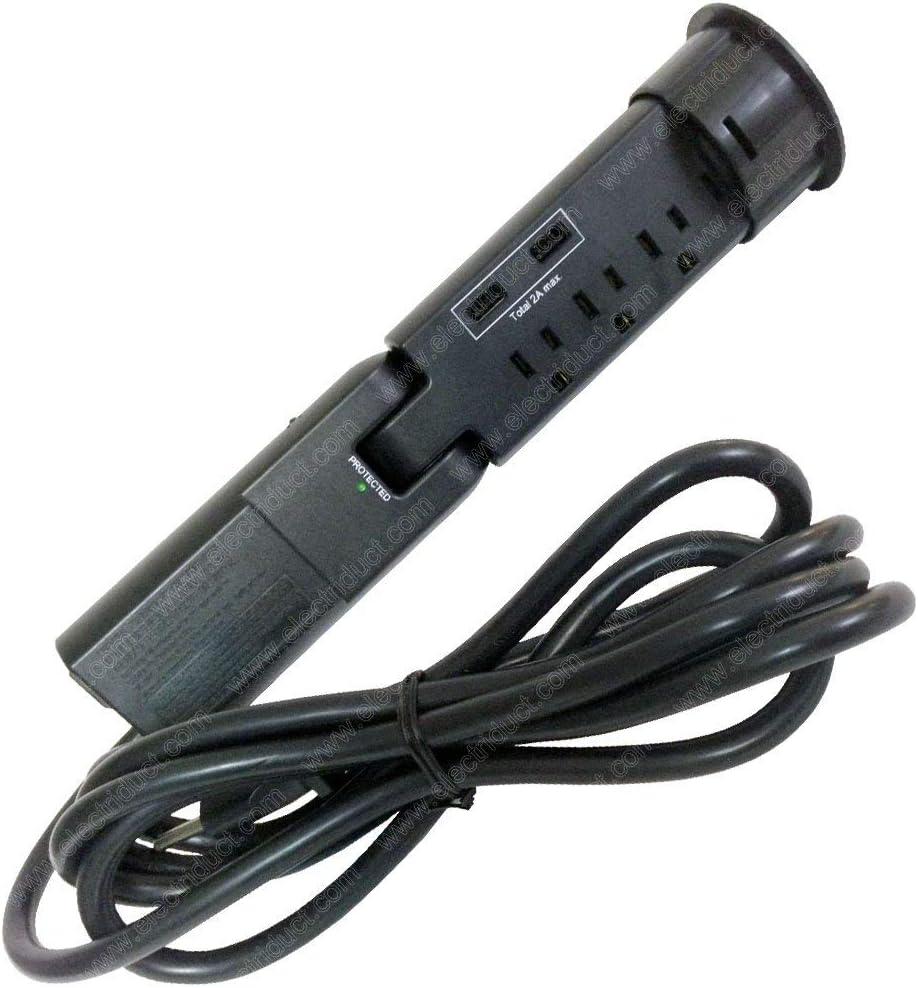 This Power Center provides 4 125V AC outlets with a total of 12A intensity, and also 2 5V USB Ports to charge portable devices. It comes with 8ft cord and it is both UL and cUL Listed.
