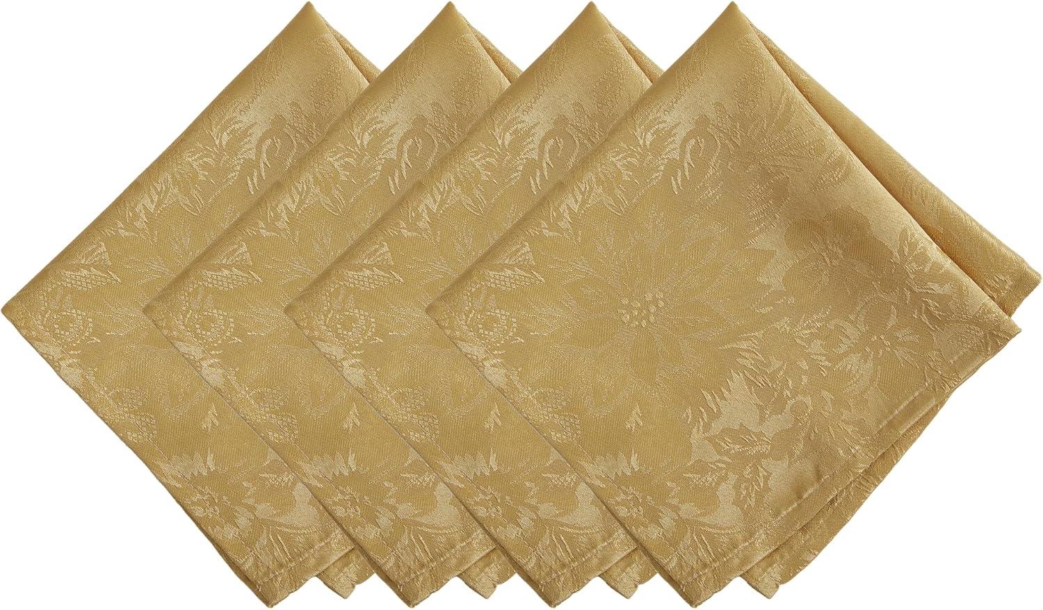 The Poinsettia Elegance Woven fabric napkin set is the perfect solution to your decorating and table linen needs. Delicately woven jacquard poinsettia design gives it the versatility of a solid, with a touch of fashion. Excellent for special occasions, events, holiday parties, family gatherings and everyday use during the holiday season. These napkins have the soft hand of an ordinary napkins, with the ded function you need. Silky fabric can be ironed to release stubborn creases and make your na