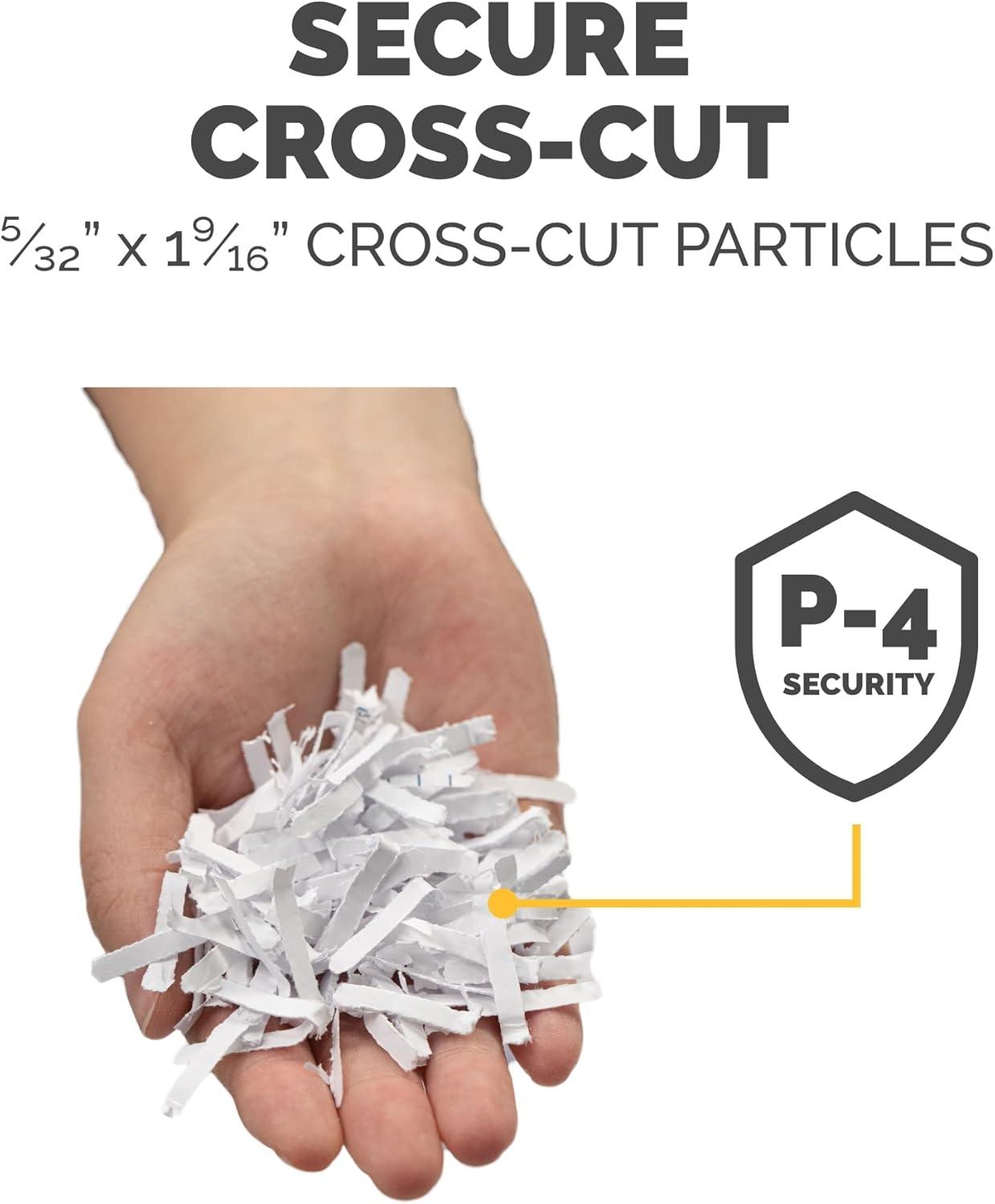 The Fellowes® Powershred 12C New Cross-Cut Paper Shredder brings powerful shredding ability to your home or office. Shred up to 12 sheets of paper per pass into small cross-cut particles, with an enhanced P-4 security rating for confidential documents. In dition to paper, the Powershred 12C can also safely shred staples, paper clips, credit cards and unopened junk mail. To protect more than your identity, the 12C's patented Safety Lock allows you to disable the shredder when not in use for ded s
