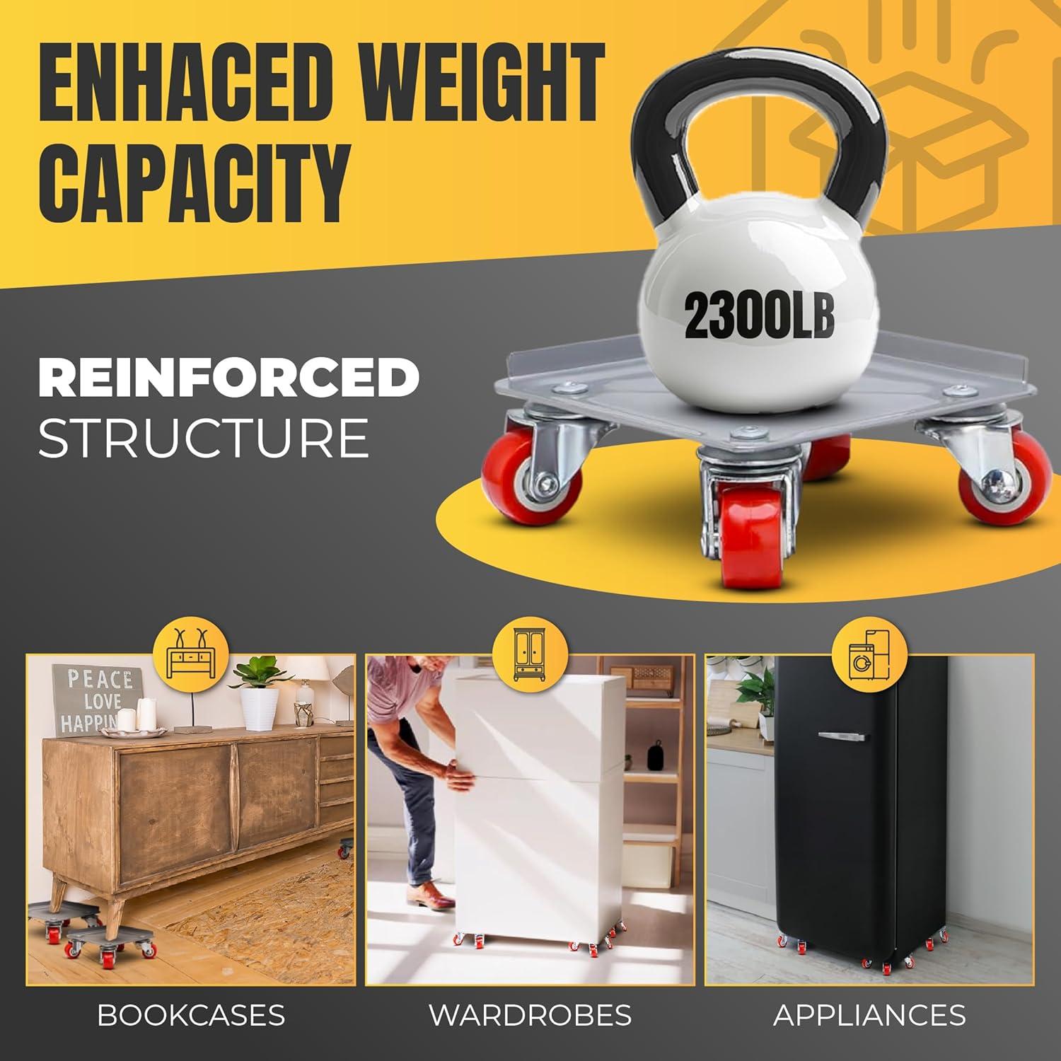 🚚 HANDLES UP TO 2300LB – Industrial-strength set designed to move even the heaviest furniture or appliances with minimal effort. Perfect for fridges, pianos, or tool cabinets.