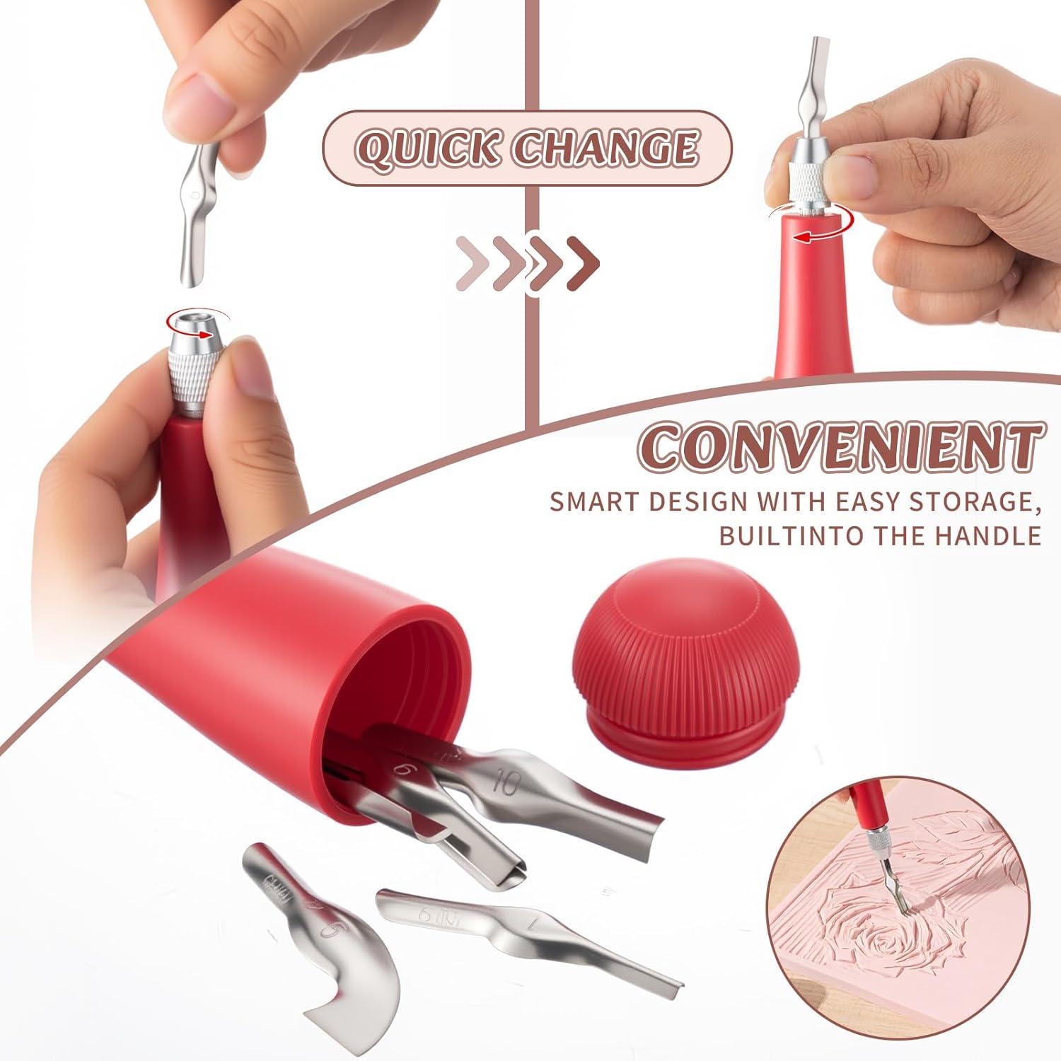 - Ergonomic Engraving Tools: this linocut kit comes with ergonomically designed engraving tools that enhance comfort during extended carving sessions; This set of engraving knives is equipped with 6 engraving hes of different designs, tailored for both bro shaping and fine detailing, making need and the precise work required for printmaking