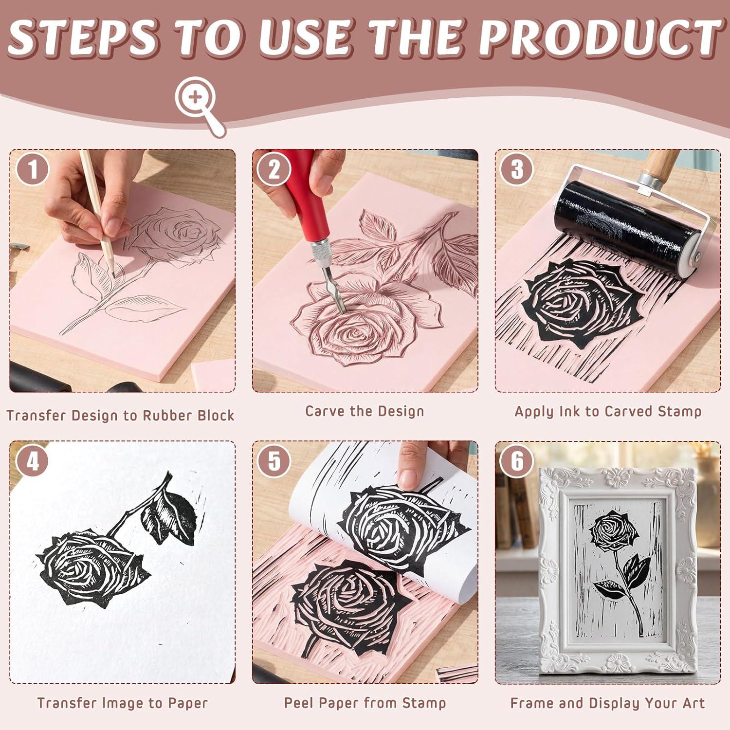 - Perfect for Beginners: the linocut kit is suitable for Beginners, The Linoleum blocks Me from soft rubber, easy to carve, making them suit for beginners and seasoned artists alike; Whether you're creating stamps or intricate designs, these linoleum blocks for printmaking provide precision and comfort