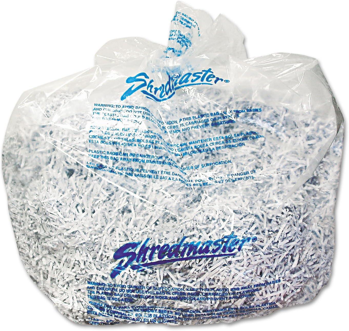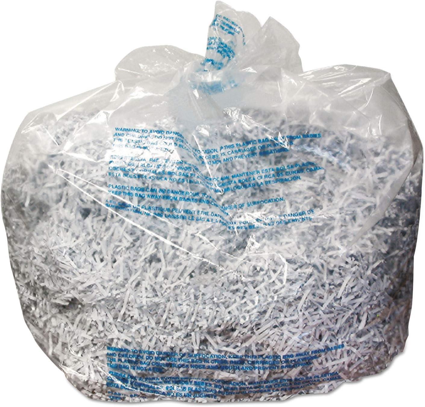 These plastic shredder bags snugly fit the 30-gallon waste bins of Swingline Large Office Shredders and the Stack-and-Shred 500X, 500M, 750X and 750M Hands Free Shredders. Clear and see-through, these bags simplify clean-up. 25 bags per pack.