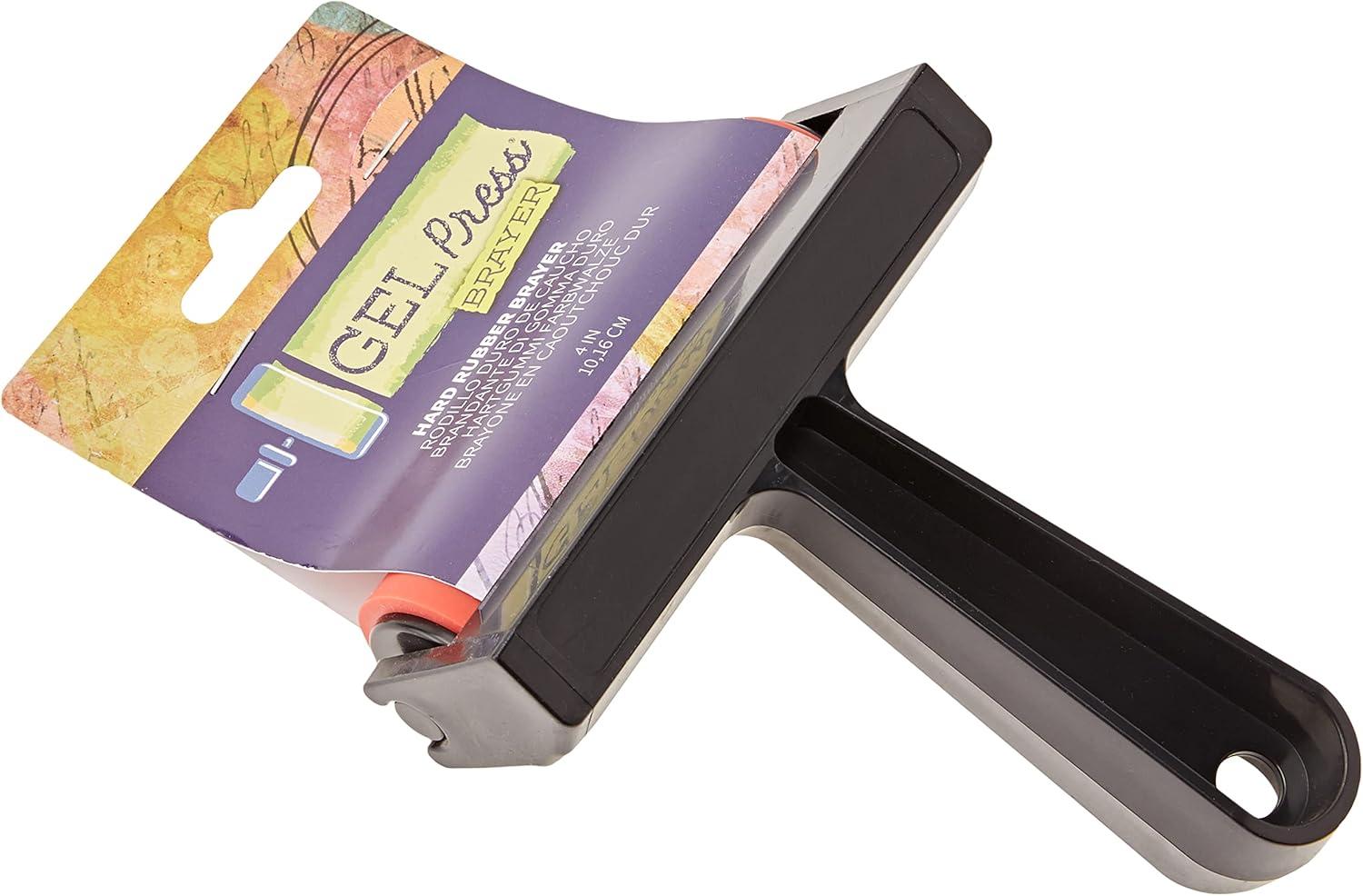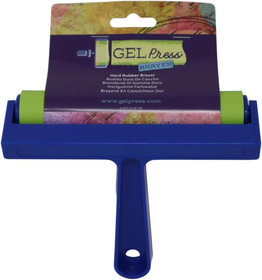 Product Description Gel Press Hard Rubber Brayer A must-have tool when working with Gel Press plates, this brayer is a hard roller me from synthetic, latex free rubber. Use this brayer to apply and spre out paint onto the Gel Press monoprinting plates or the Impressables embossed gel plates. It is also often used to press the paper surface down evenly onto a plate to maximise results. The robust brayer can handle heavy usage and the 4” roller snaps out for easy cleaning. Create amazing effects b