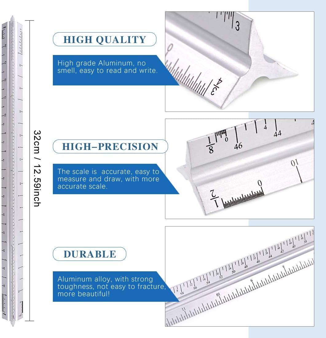 - ★【Triangular Ruler】: Including a 12inch triangular ruler, which is me of high quality solid aluminum; With accurate imperial scales 1-1/2", 1 , 3/4", 3/8", 3/16", 3/32", 1/2", 1/4", 1/8", 3, 16. Perfect used for facilitate the drafting and measuring of architectural drawing.