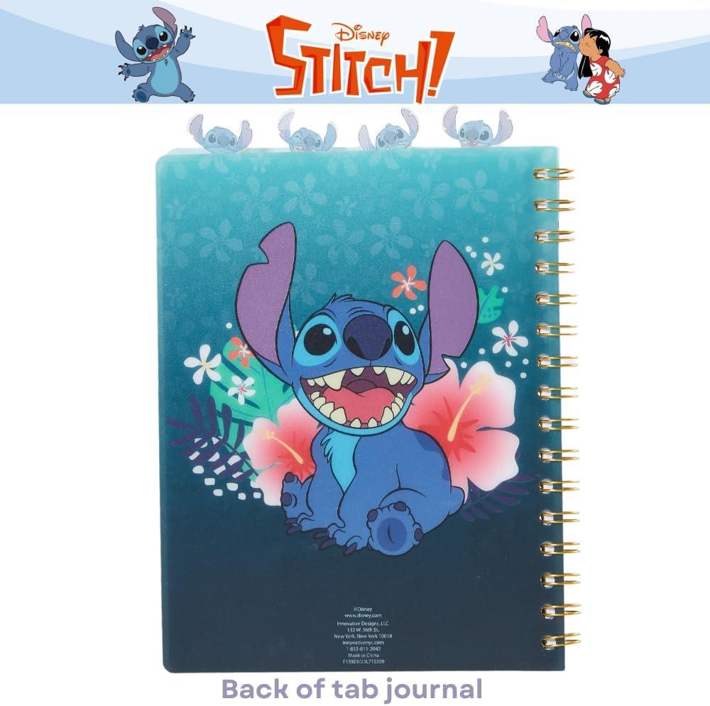 The Stitch Tab Journal Notebook is a vibrant 8x7 purple notebook featuring lined pages with Stitch images. It includes a protective vinyl cover, four Lilo and Stitch-themed separators, and 96 lined diary pages. With spiral binding, it's perfect for travel, school, or writing. This notebook makes a great gift for Lilo and Stitch fans, capturing the charm of the characters and their ventures.