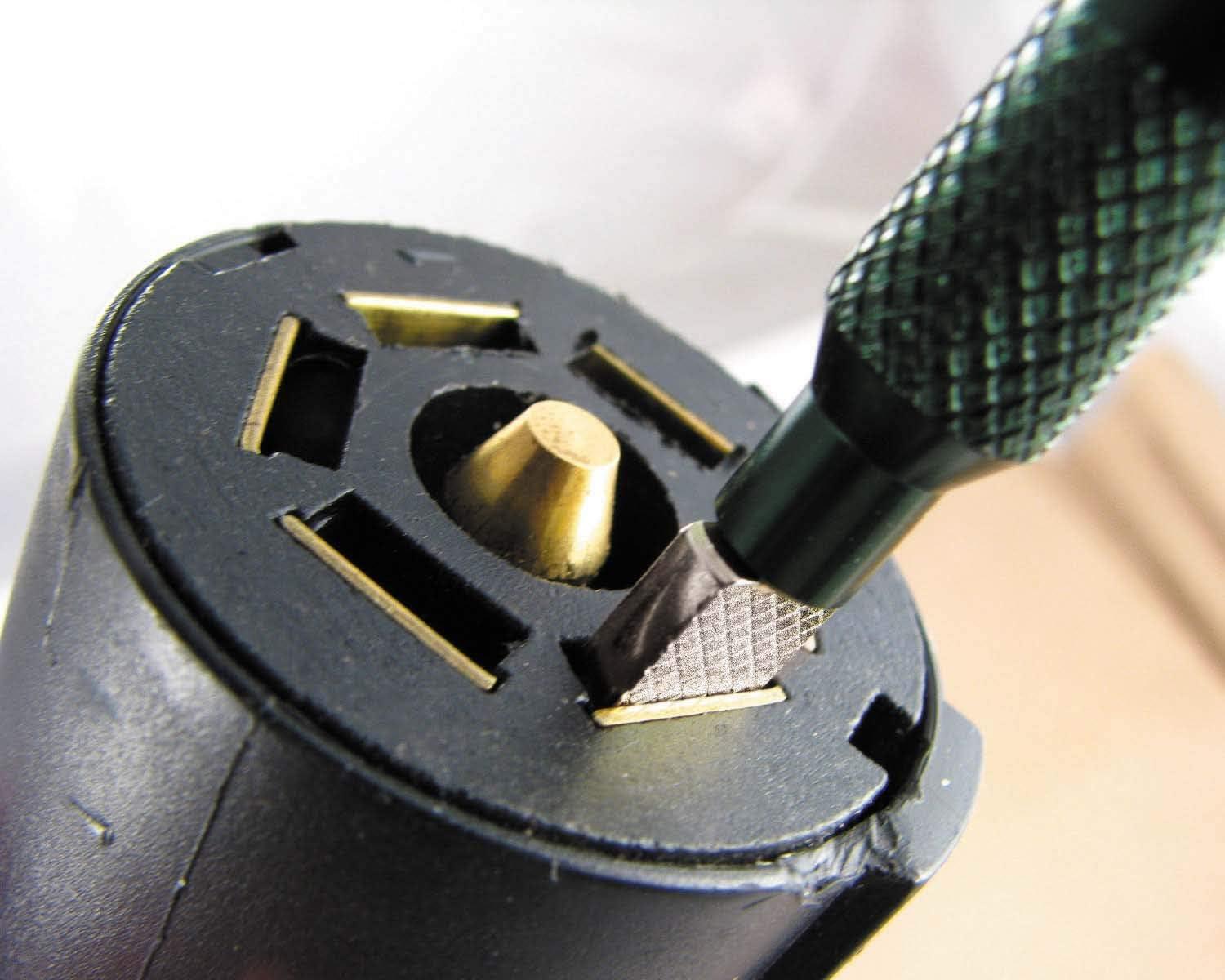 Test, clean and restore 7-way spe pin connections. The tester will verify that the tow vehicle is sending proper signal to the connector, while accompanying cleaning tools will remove corrosion, and verify proper pin size on both male and female truck/trailer plugs. For use with 7-way spe connectors.