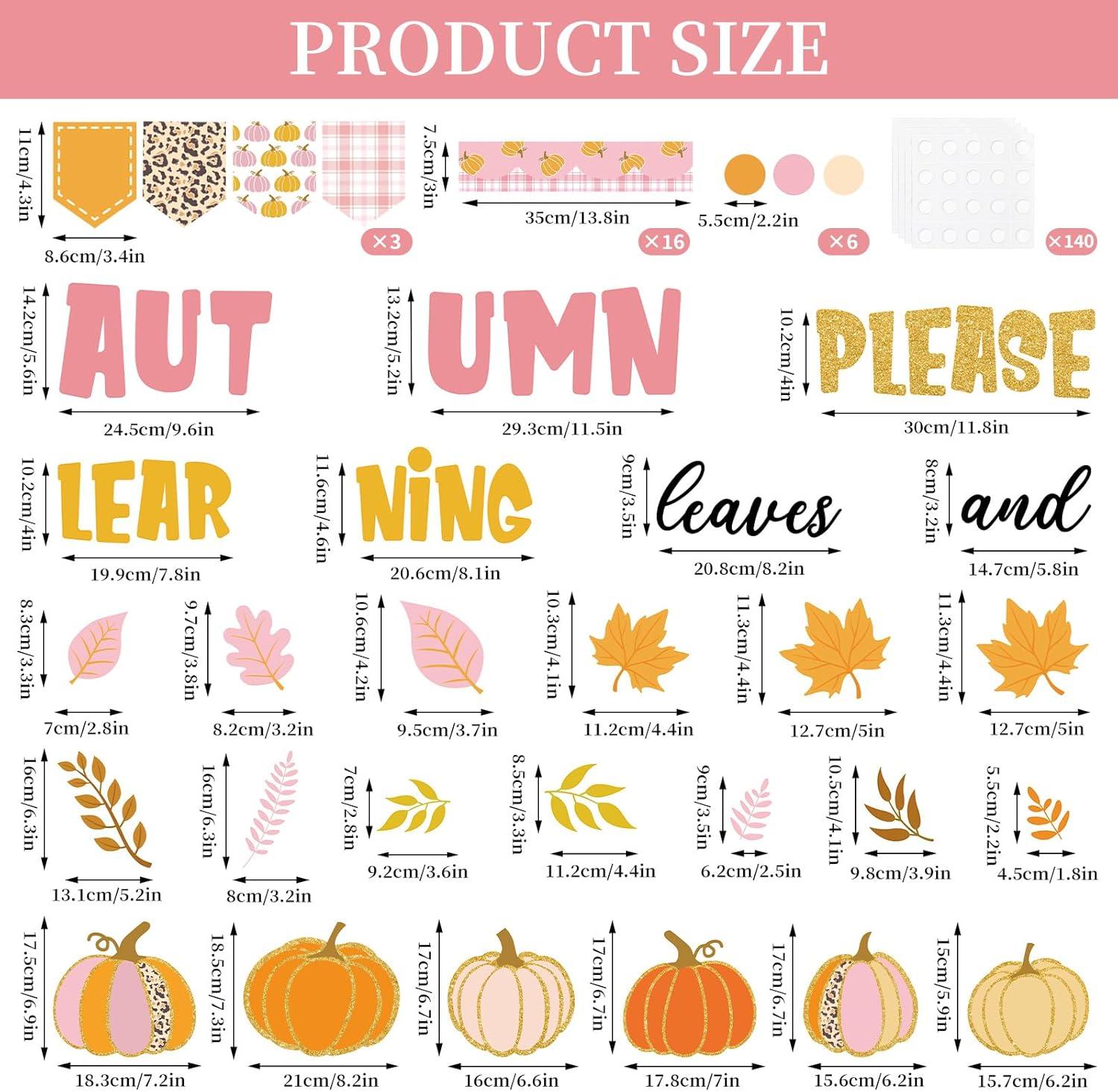 Features: Wonderful decor: A complete pink-orange fall leaves and pumpkin bulletin board decoration kit for you, includes vibrant pattern cutouts and inspirational phrase, perfect for daily or holiday use. Atmosphere creator: The beautiful seasonal bulletin board set is suitable for classroom decorations, fall party, Thanksgiving, bulletin board decorations, DIY photo booth props, to enhance the thick learning atmosphere Specifications: Material: paper Package includes: 78 x Fall Tree Paper Cuto