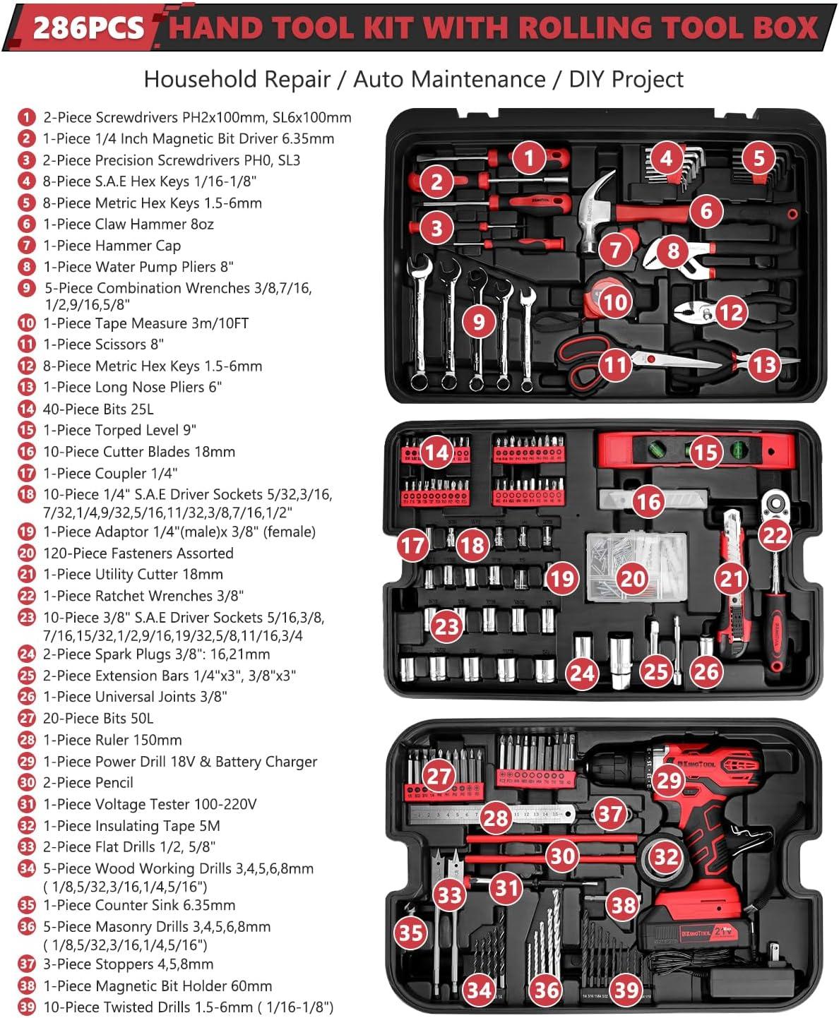 | Included Components | 21V max cordless drill, 82pcs drill bits, 5pcs combination wrenches, S.A.E driver sockets, precision |
