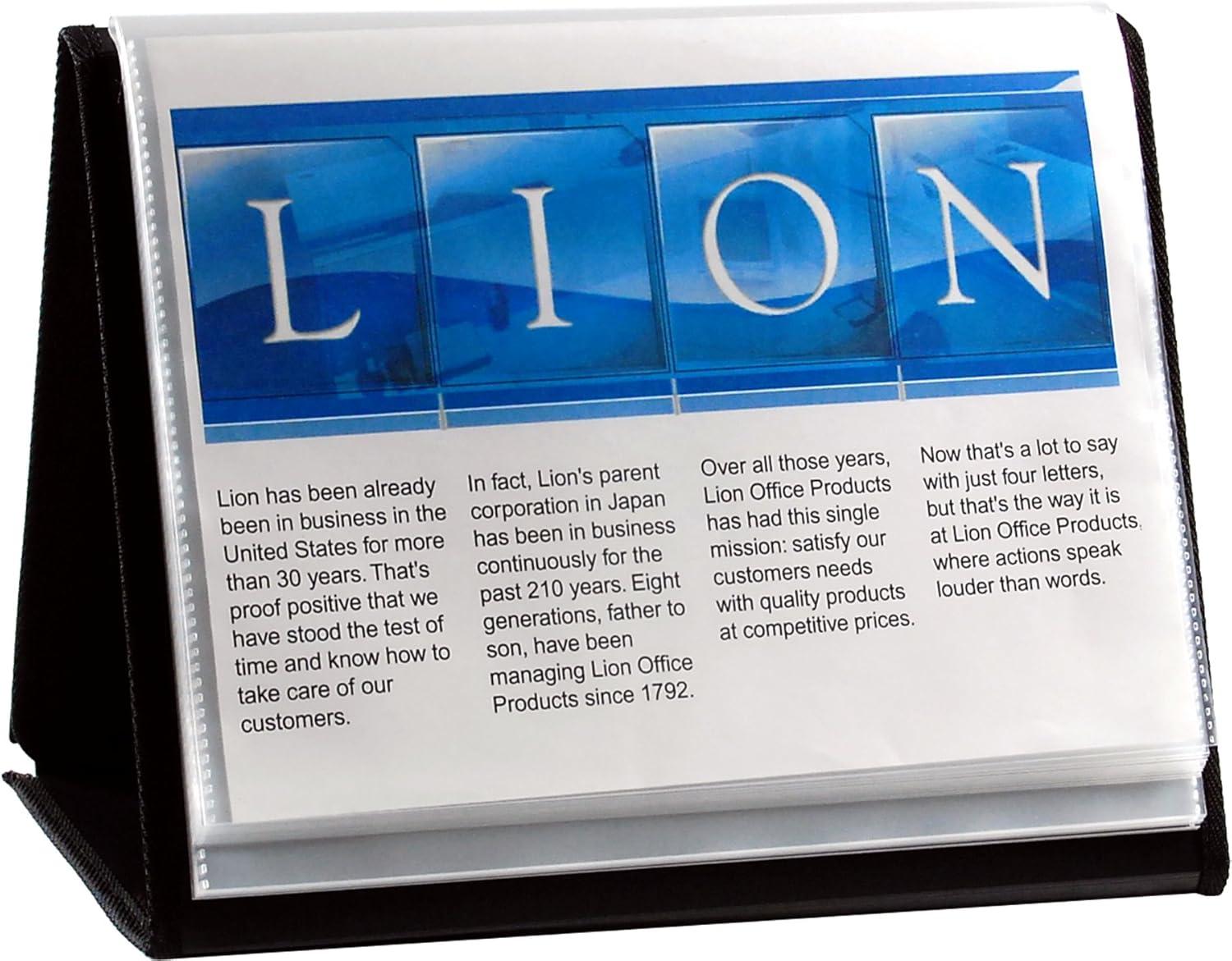 LION flip-n-tell® easel display book is a compact portable easel. This stylish presentation flip book has 20 double sided horizontal pockets and a business card pocket on black cover. With its easy set up, light and slim portable feature, this presentation display book is ideal for carrying around. LION presentation easel is the perfect tabletop presentation idea. Built with durable framework and finished with an attractive sewn border. With 20 acid free, letter size pockets, this tabletop displ