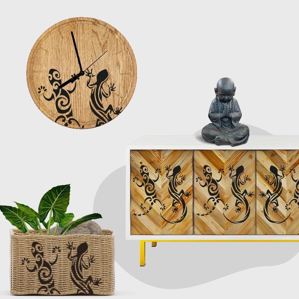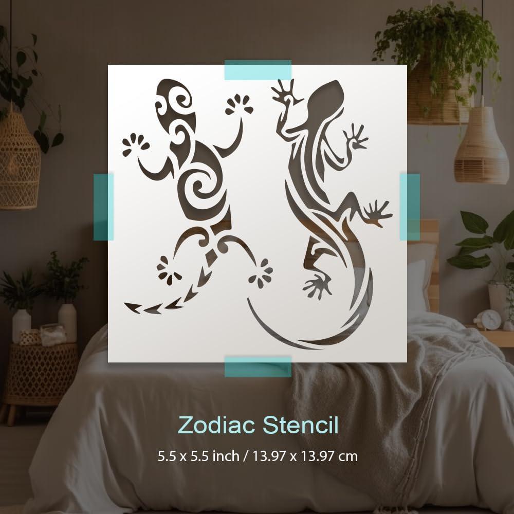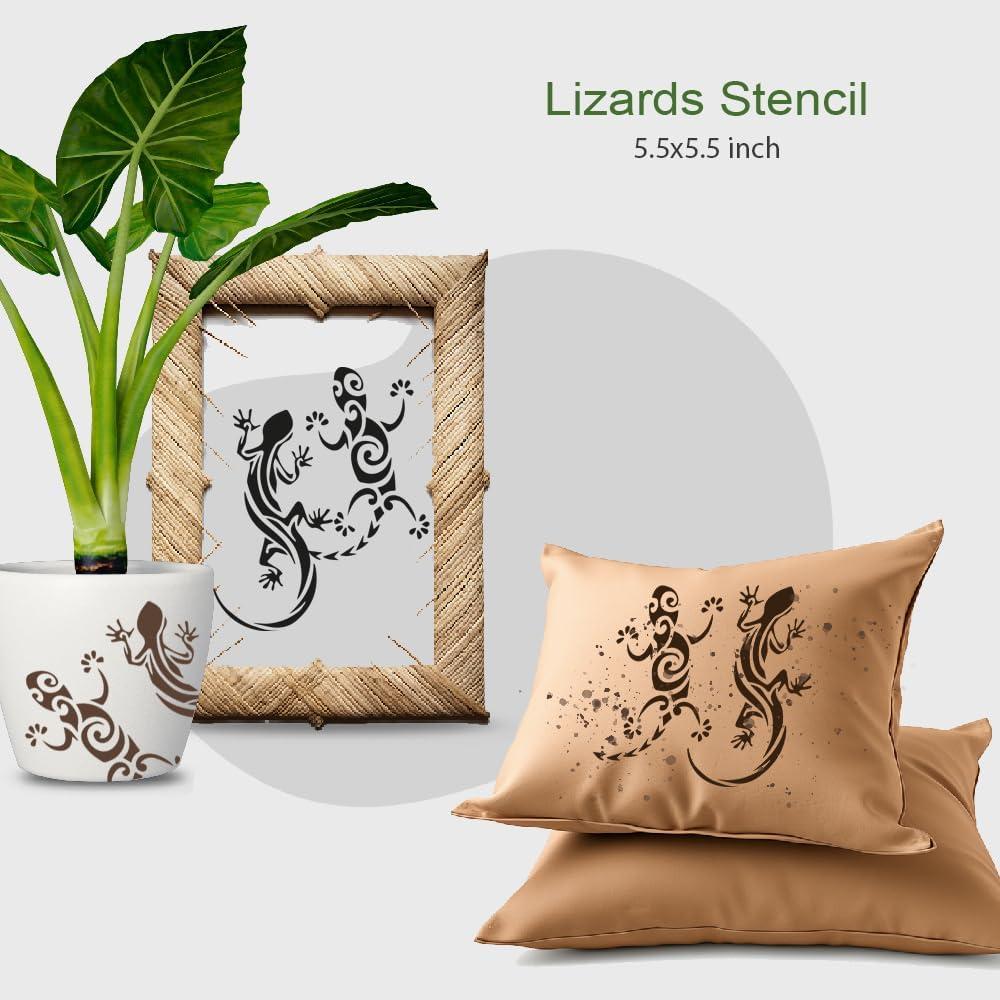 Reusable Lizard Stencil for Arts and Crafts This versatile lizard stencil is me from durable clear plastic and designed for a wide range of creative projects. With a flexible structure, it apts to different surfaces while maintaining sharp lines. Its reusable quality makes it an economical and practical tool for hobbyists and artists alike. Key Features Material: Clear flexible plastic Size: 5.5 x 5.5 inches Design: Lizard pattern template Uses: Scrapbooking, drawing, airbrushing, DIY decoration