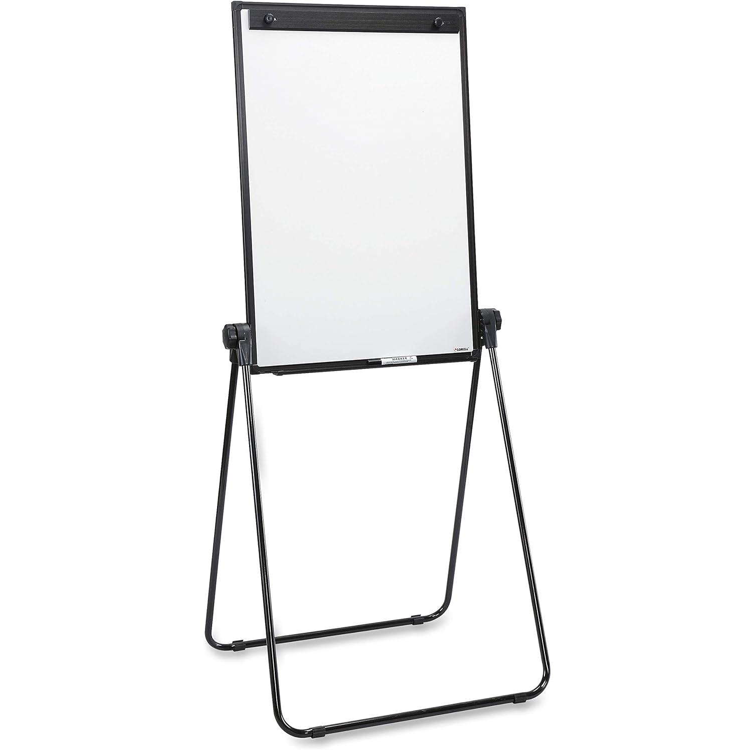 Easel offers two dry-erase surfaces and a flip-chart clip to maximize note space. The double-sided, melamine dry-erase board measures 24" x 36" and justs in height from 39" (99cm) to 67" (171cm) for better viewing. Sturdy steel frame is powder-coated for durability. Easel includes a marker tray and flip-chart clip.