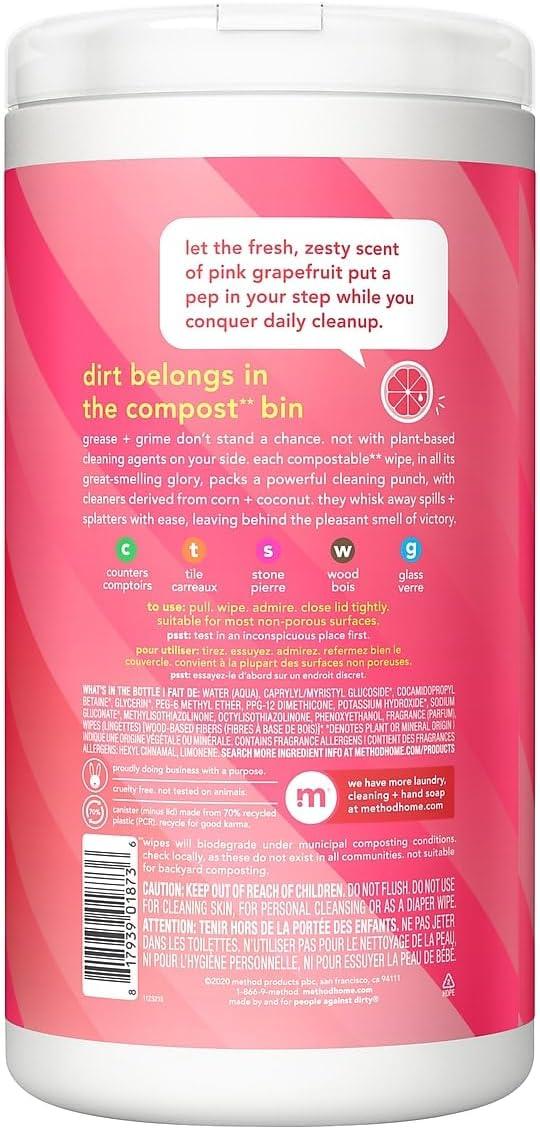 Grease + grime don't stand a chance. Not with plant-based cleaning agents on your side. Each compostable* wipe, in all its great-smelling glory, packs a powerful cleaning punch, with cleansers derived from corn + coconut. They wisk away spills + splatters with ease, leaving behind the plasant smell of victory. *Wipes will biodegre under municipal composting conditions. Not suitable for backyard composting.