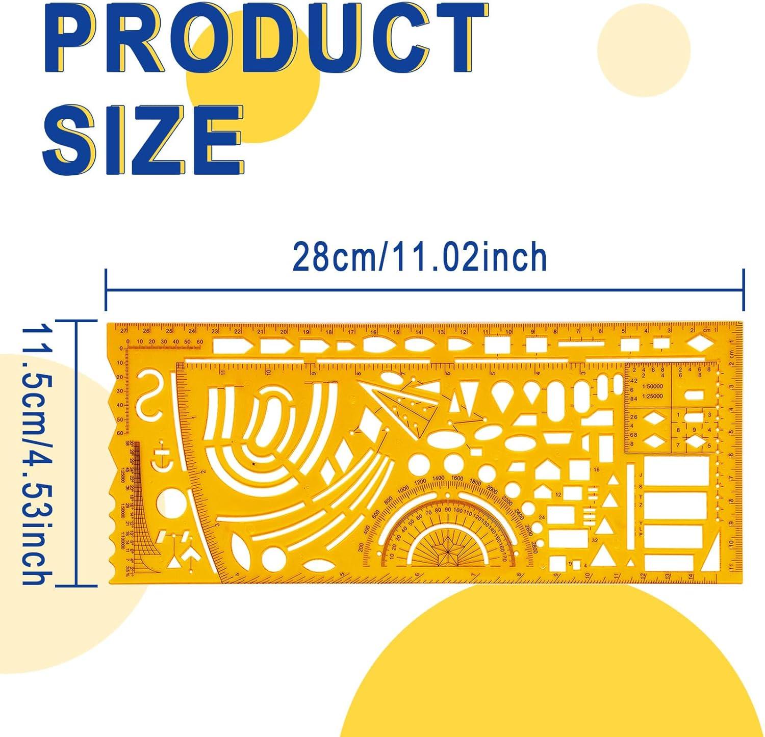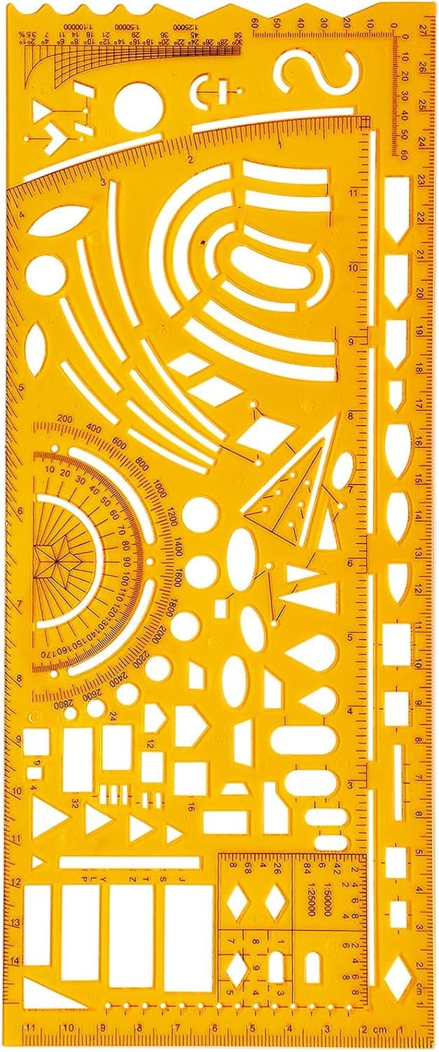 PRODUCT INFORMATION: Product Name:Drawing Template. Type:Military Science Timely Template. Item Number:No.4358. Color:Orange. Material:K Resin. Size:Length x Width=11.02inchx4.53inch=28cmx11.5cm. Quantity:1pcs.