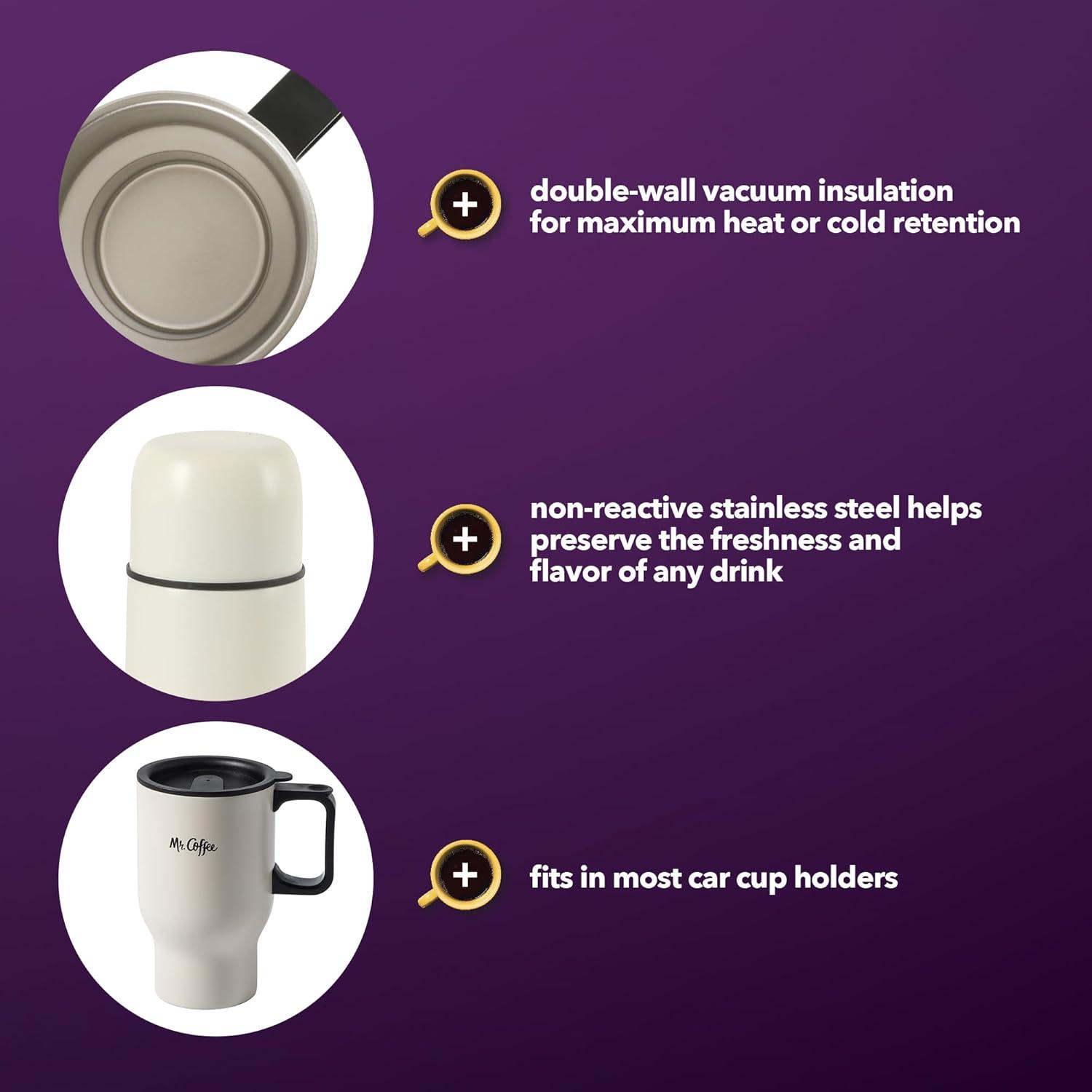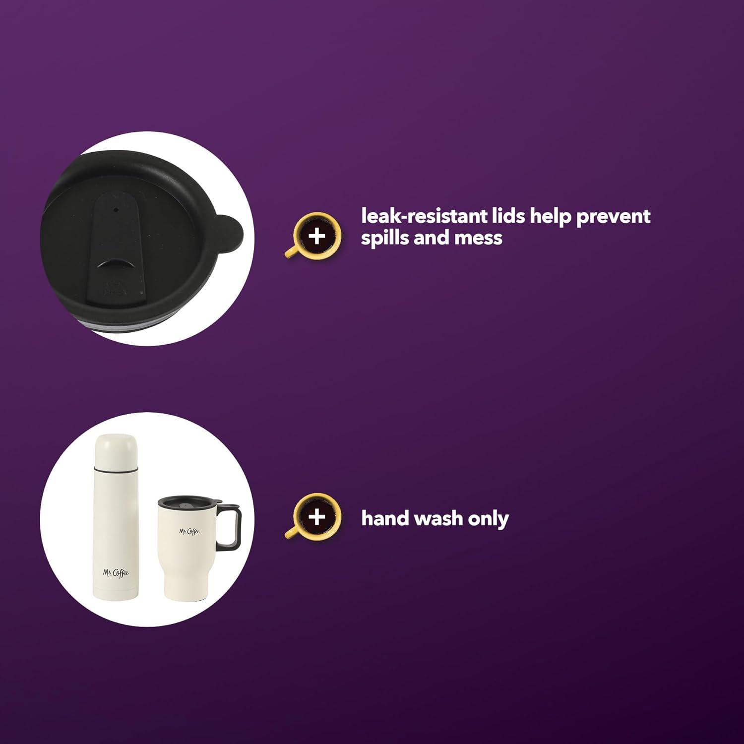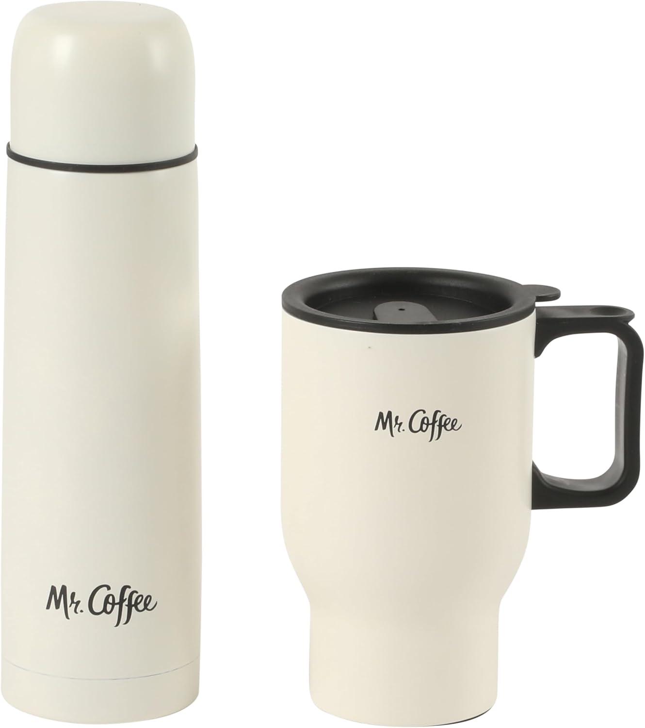 The Mr. Coffee Javelin 2-piece Double-Wall Stainless Steel Travel Bottle and Mug Set is the perfect duo to take any drink on the go. The set offers one slim but versatile thermal bottle and one perfectly-sized mug to promote all-day hydration and an active, healthy lifestyle. Each portable beverageware comes with a leak-resistant lid with special features designed for easy serving and sipping. Suitable to fit into most standard cup holders, the Mr. Coffee Javelin Set is crafted from non-reactive