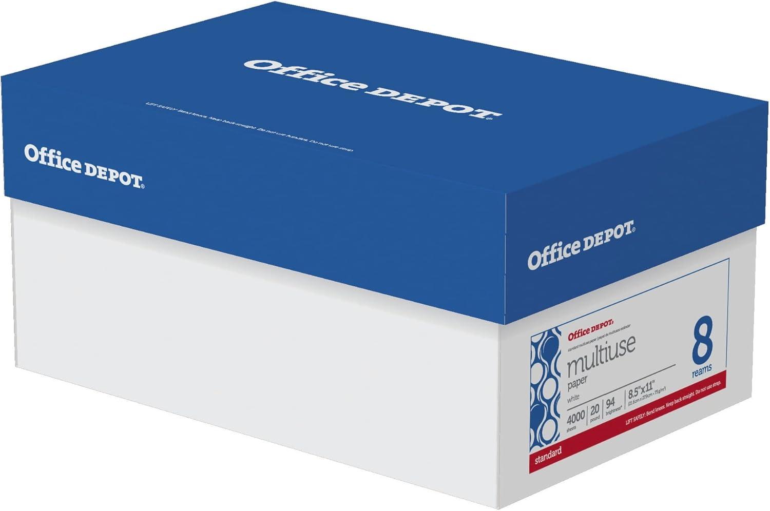 Designed for use in most printers, copiers and all-in-ones, Office Depot paper is an ideal option for stocking your office. This letter-size paper offers 94 brightness in white with 500 sheets per ream in a case of 8 reams. Provides a bright, smooth option 94 (U.S.) brightness. Office Depot Brand multiuse paper works in most printers, copiers and all-in-ones. Smooth, clean finish and precision-cut edges for problem-free feeds. Acid-free paper won't yellow or fe over time. 94-brightness multi-use
