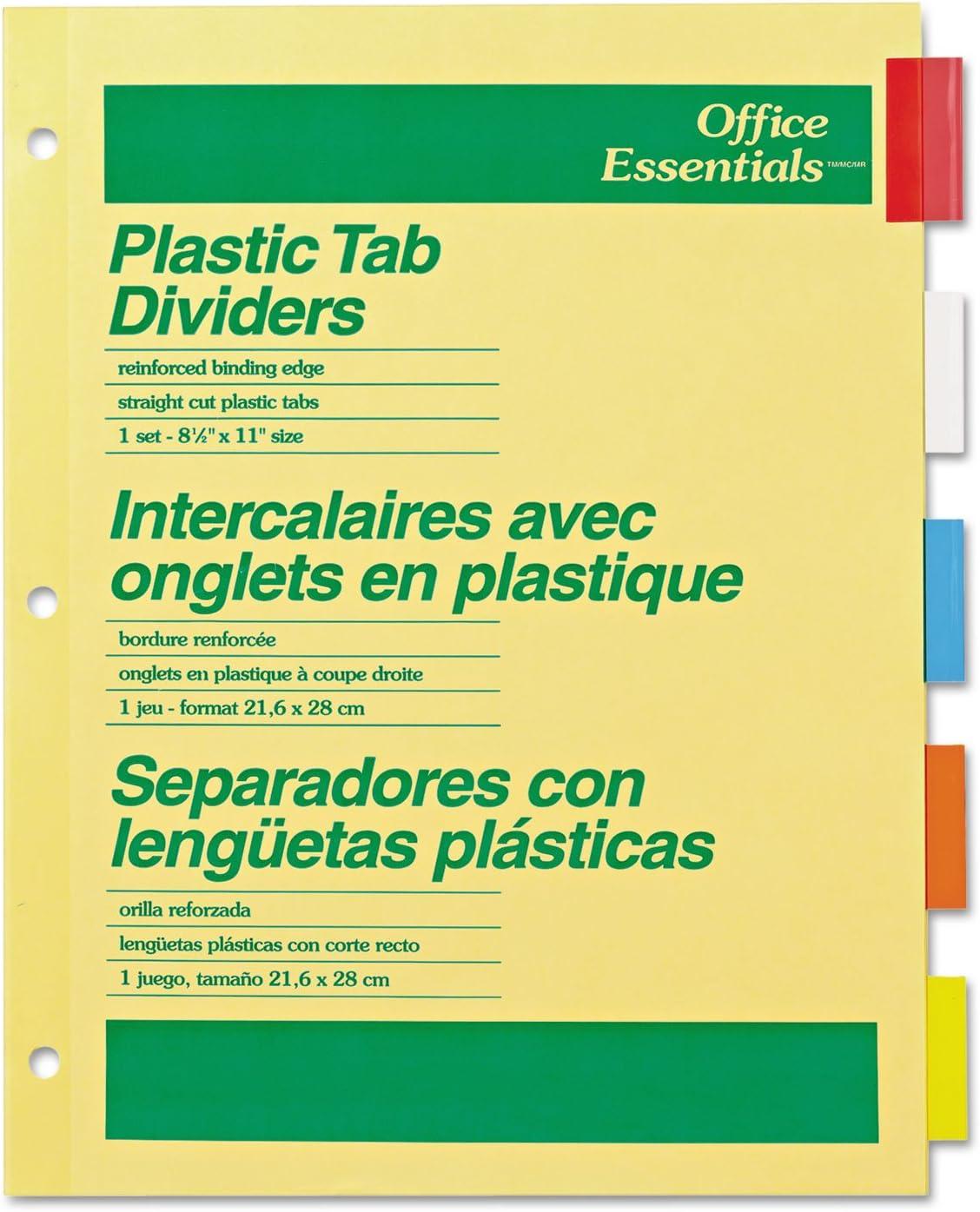 Office Essentials 11465 Plastic Insertable Dividers, 5-Tab, Letter