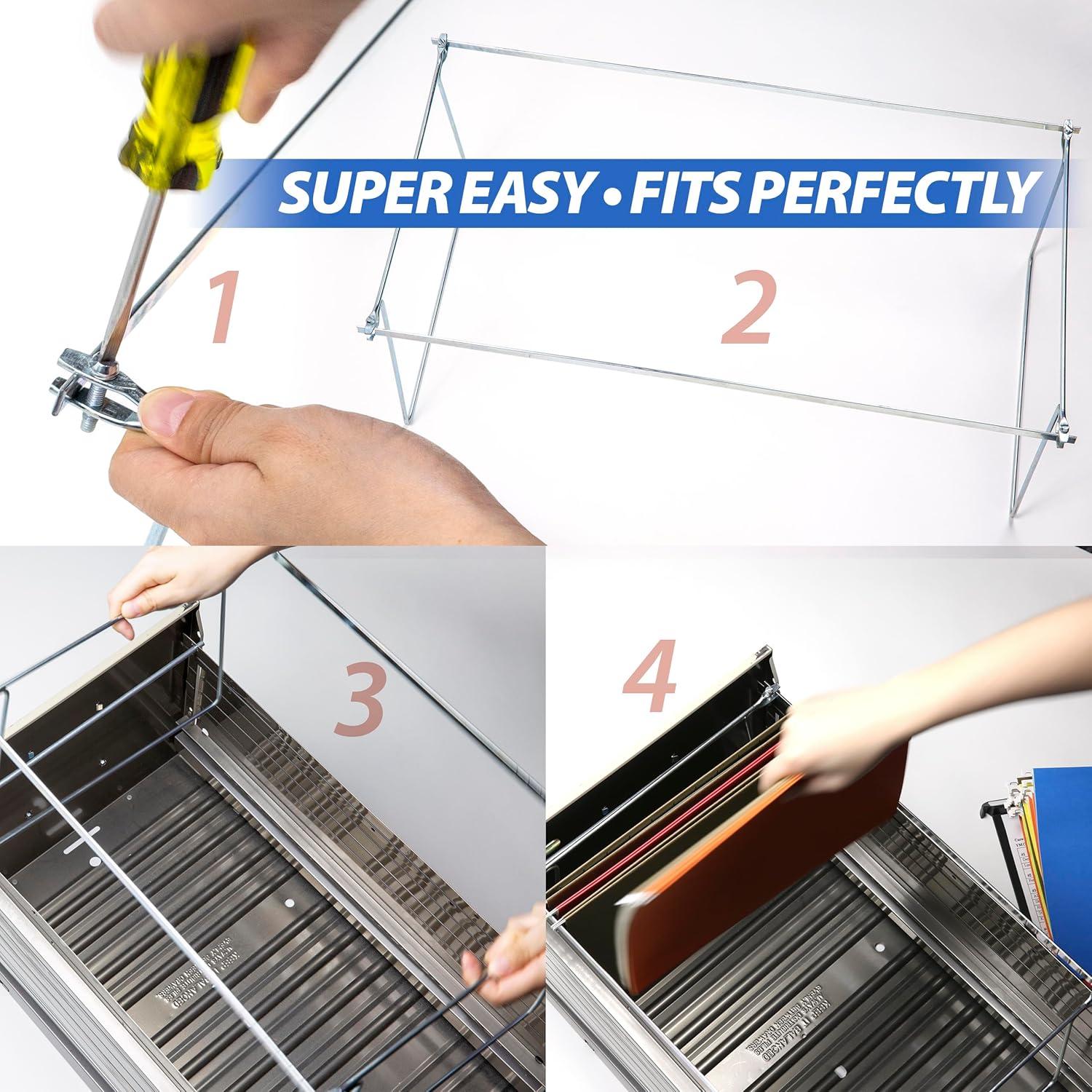 For home office file cabinets 14' to 18' deep, holds file folders in drawer. Fits 14' to 18' Drawer Letter Size. Keeps files and organized in the drawer with these hanging file frames. Steel frames are heavy-duty, coated steel construction. Comes in a pack of two.