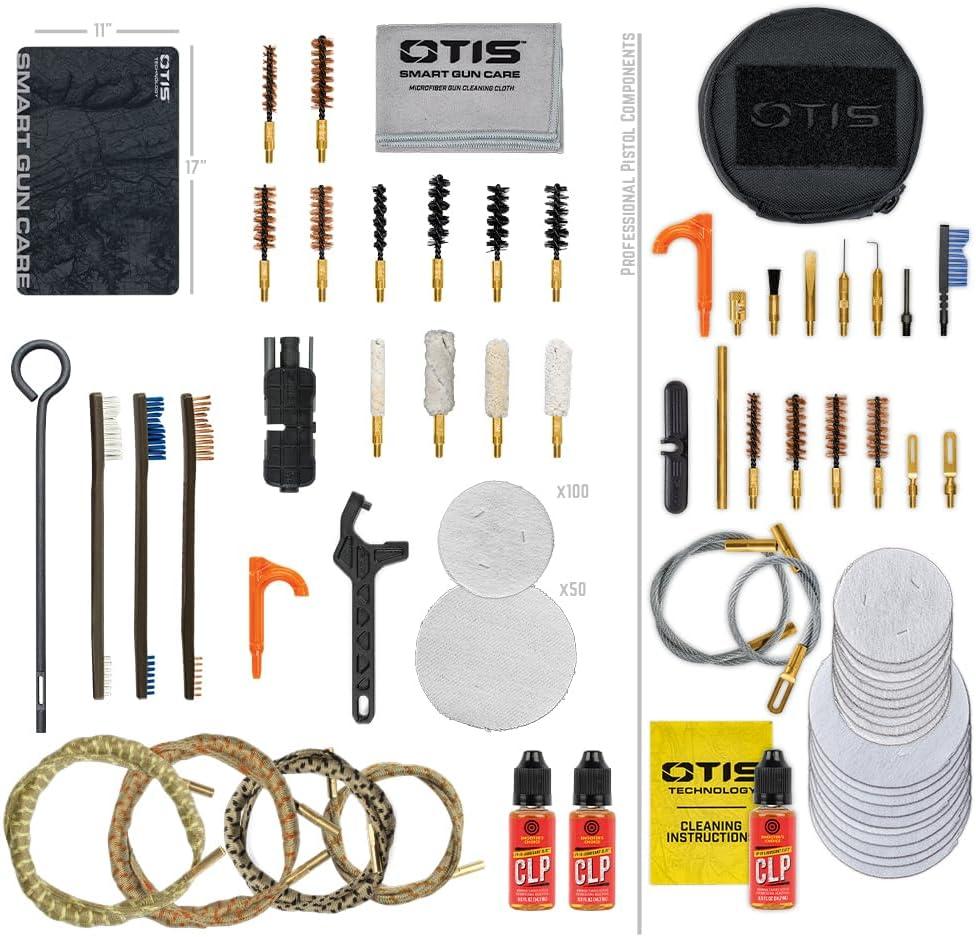 Product Description The Otis Elite delivers top notch performance and durability to the avid gun user by ensuring a proper Breech-to-Muzzle cleaning experience unique to the Otis Brand. This universal gun cleaning kit comes with over 60 components for all rifles, pistols, shotguns and inline muzzleloers, including a complete Otis Tactical Cleaning Kit for on-the-go cleaning all contained in a lightweight, portable case. Includes: 16 firearm specific bronze bore brushes with size marked (.17, .22