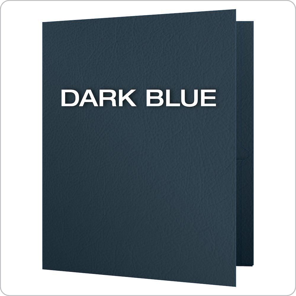 Oxford Twin-Pocket Folders keep things in order in the classroom, at home and at the office. With over 15 colors to choose from, you’re sure to find the right folder for your needs. 2 Pocket Folders. Dark Blue. Letter Size. Holds 100 Sheets. 25 Per Box. Nice, Subtle Texture: Textured paper hides marks and smudges. These two-pocket folders are durable enough to reuse as needed. A Rainbow of Color Options: ROY G. BIV would approve. Color code to your heart’s content or stick to your favorite she.