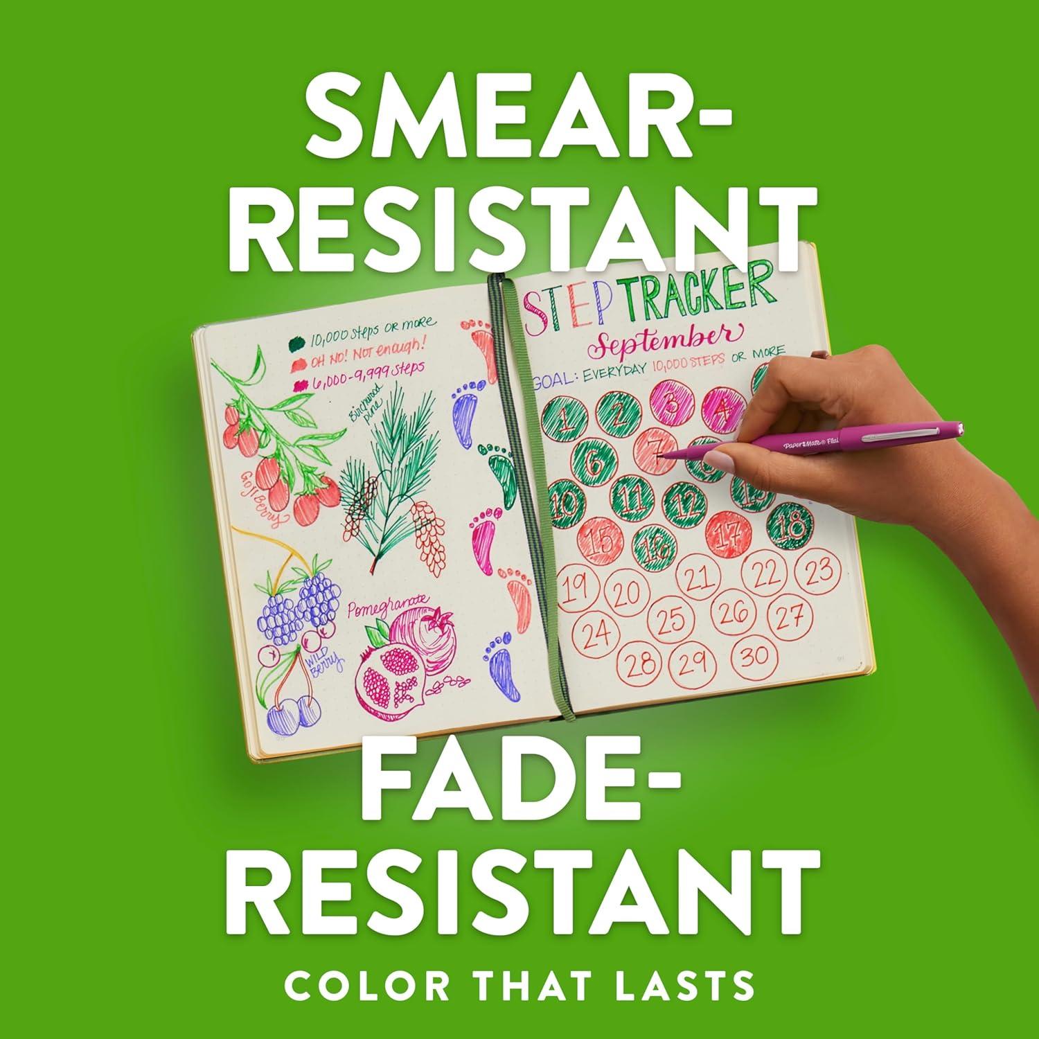 Boost your writing fun-factor with Paper Mate Flair Felt Tip Pens! With a rainbow of vivid colors to choose from and smear-resistant ink that won’t bleed through the page, these colored pens make writing a blast. The medium point (0.7mm) writes in bold, colorful lines so your self-expression makes a major statement. The best part of all? Everything you can create—whether you’re taking notes, drawing, doodling, or doing anything else that inspires you. With Flair Pens, there’s no limit to your fu