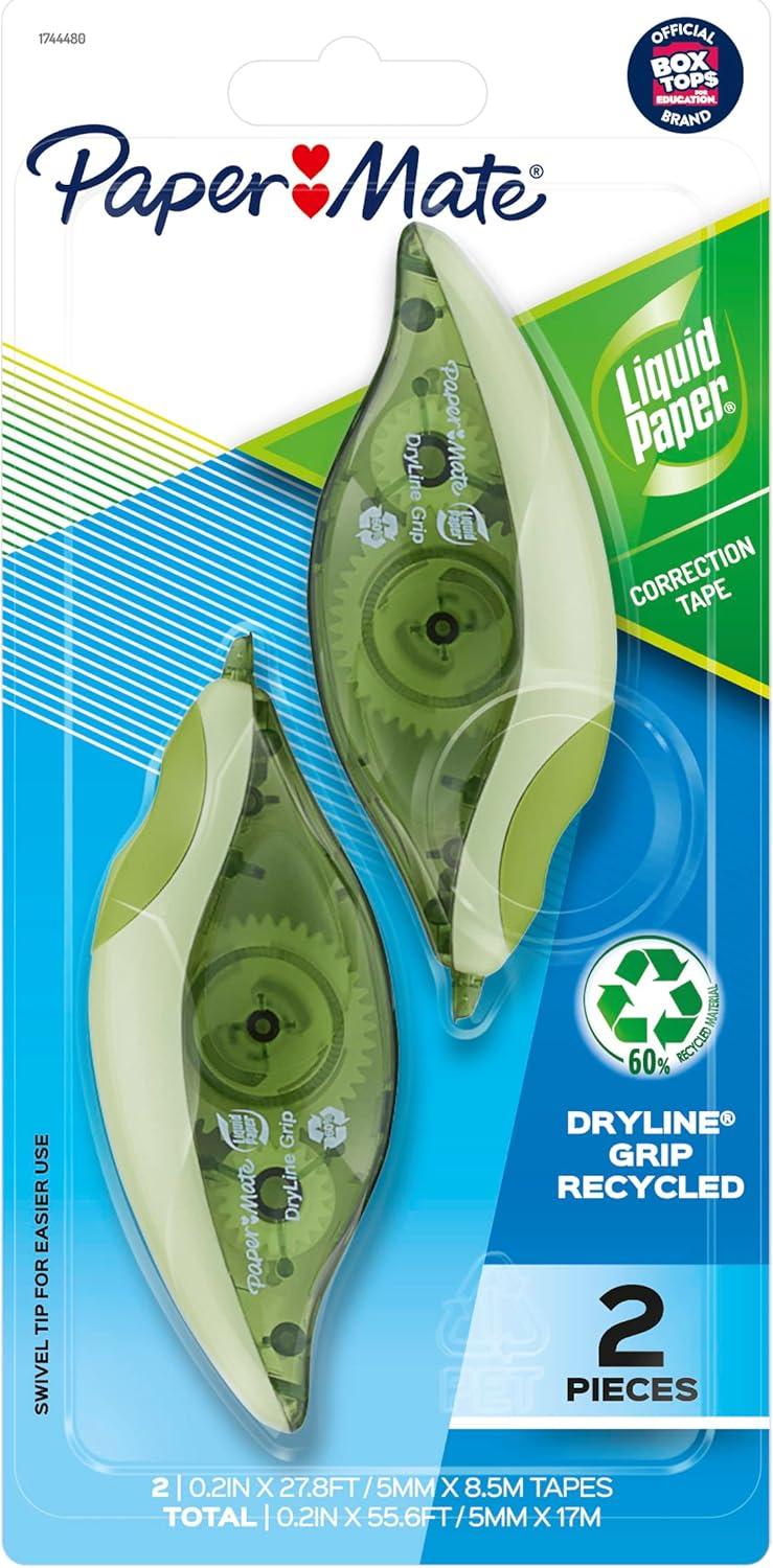Quickly cover your mistakes with the maximum comfort and supreme ease of Liquid Paper DryLine Grip Correction Tape. Ideal for long correction tasks, this tape goes down absolutely smooth and corrects instantly with no mess, so you never need to wait for it to dry before copying, rewriting, or retyping. The tape features a swivel tip that smoothly moves where you want it for easier use. You'll also enjoy an ergonomic shape that fits comfortably in your hand providing a secure hold for ded control